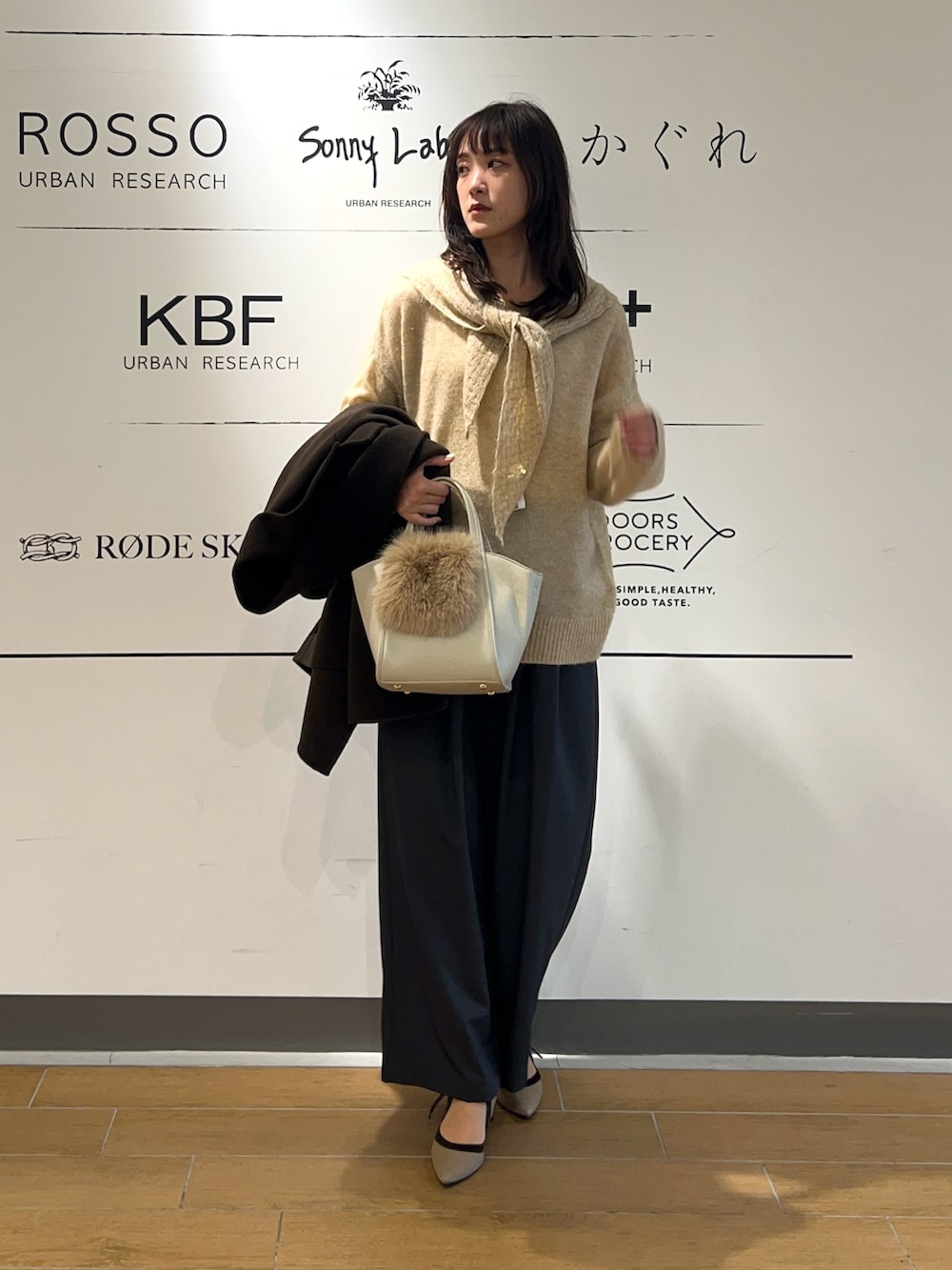 ふわっとエアリーな印象で、肩落ち感も程良く体のラインを拾わないアイテムです!ニットストールも今年らしく着こなせそう!