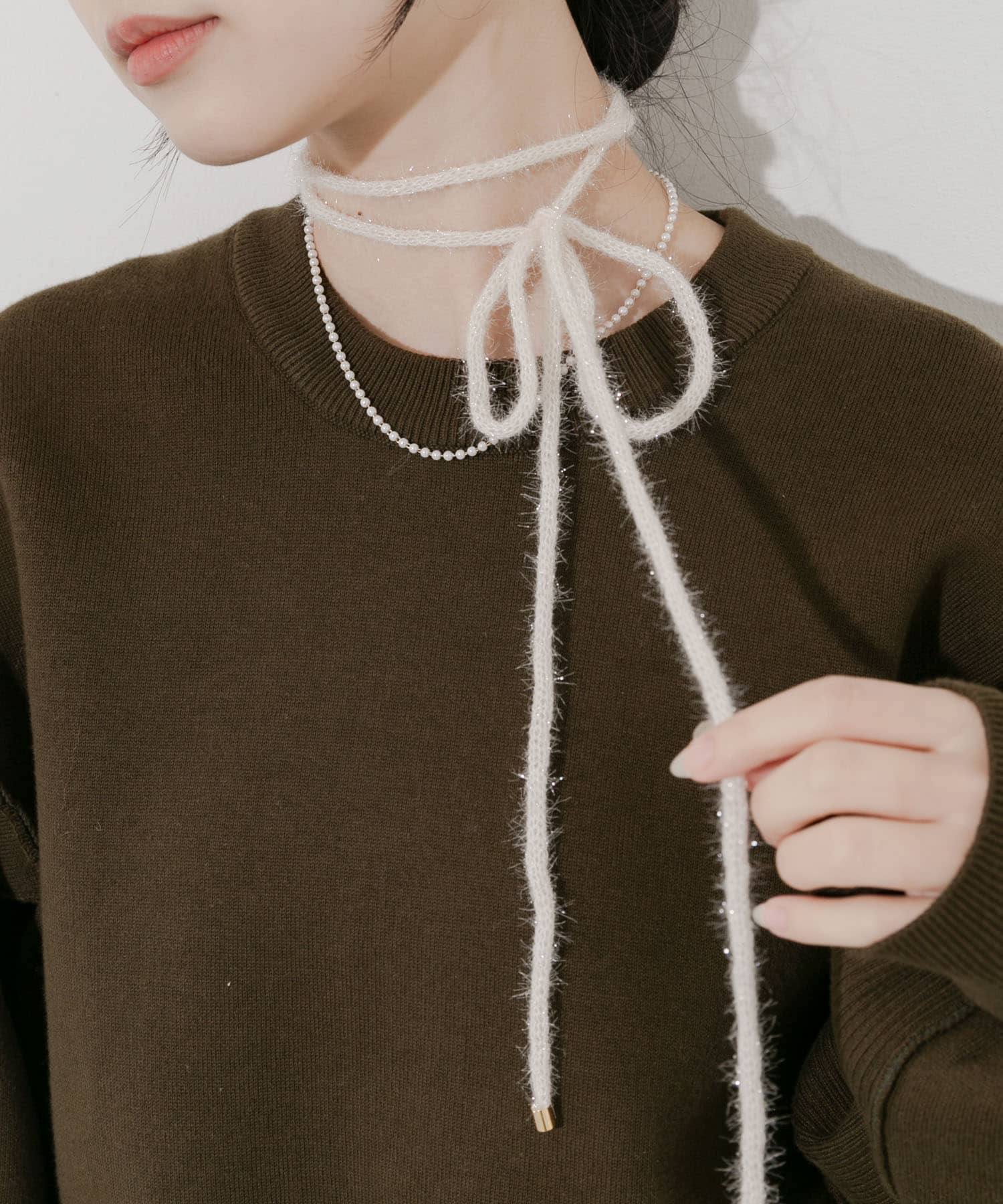 キラキラした素材のヤーンコードのパールのネックレスがSETになったアイテム✨