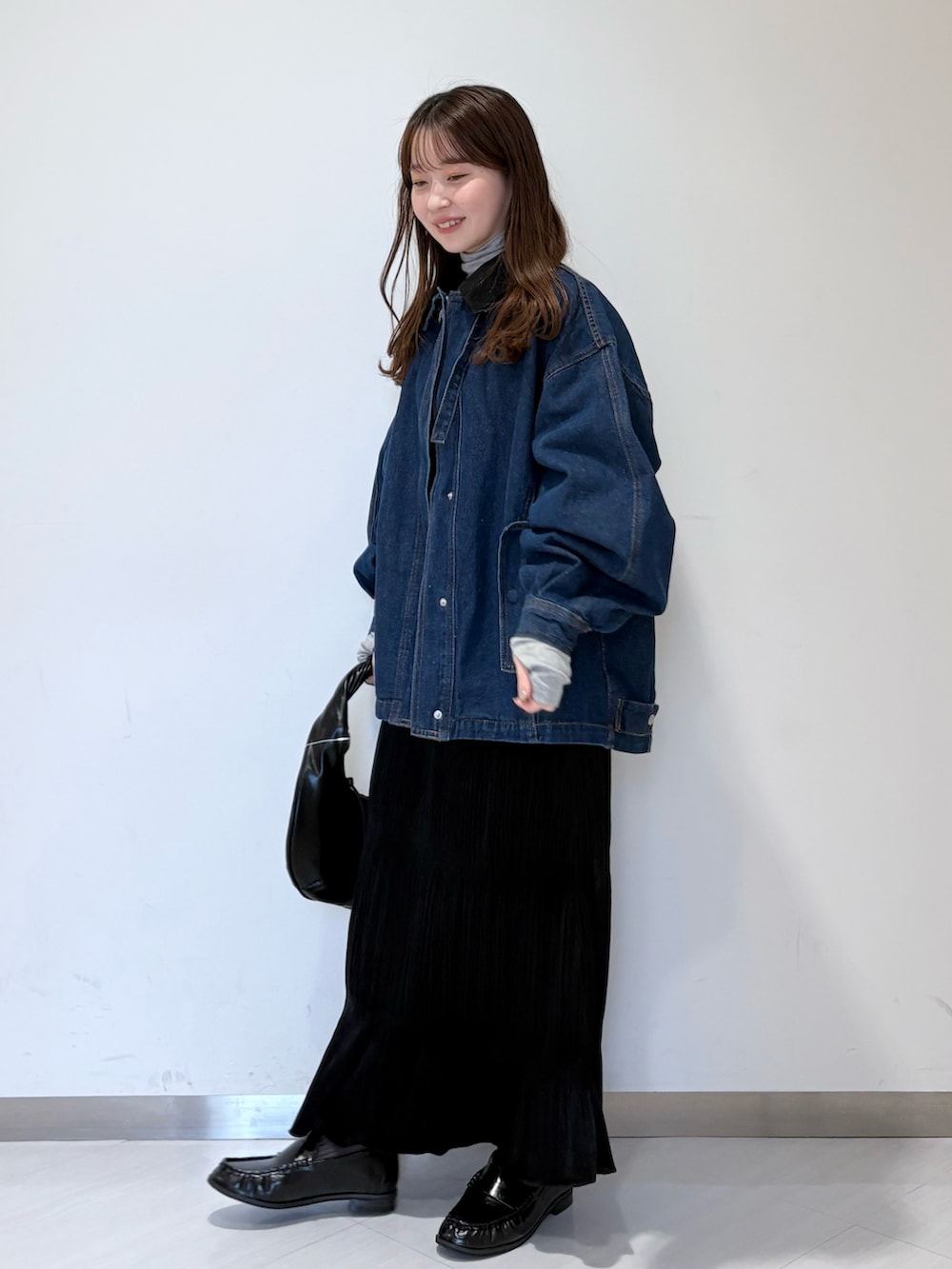デニムのブルゾンもオススメー!スタンドカラーになるし、襟のコーデュロイ素材は取り外しも◎