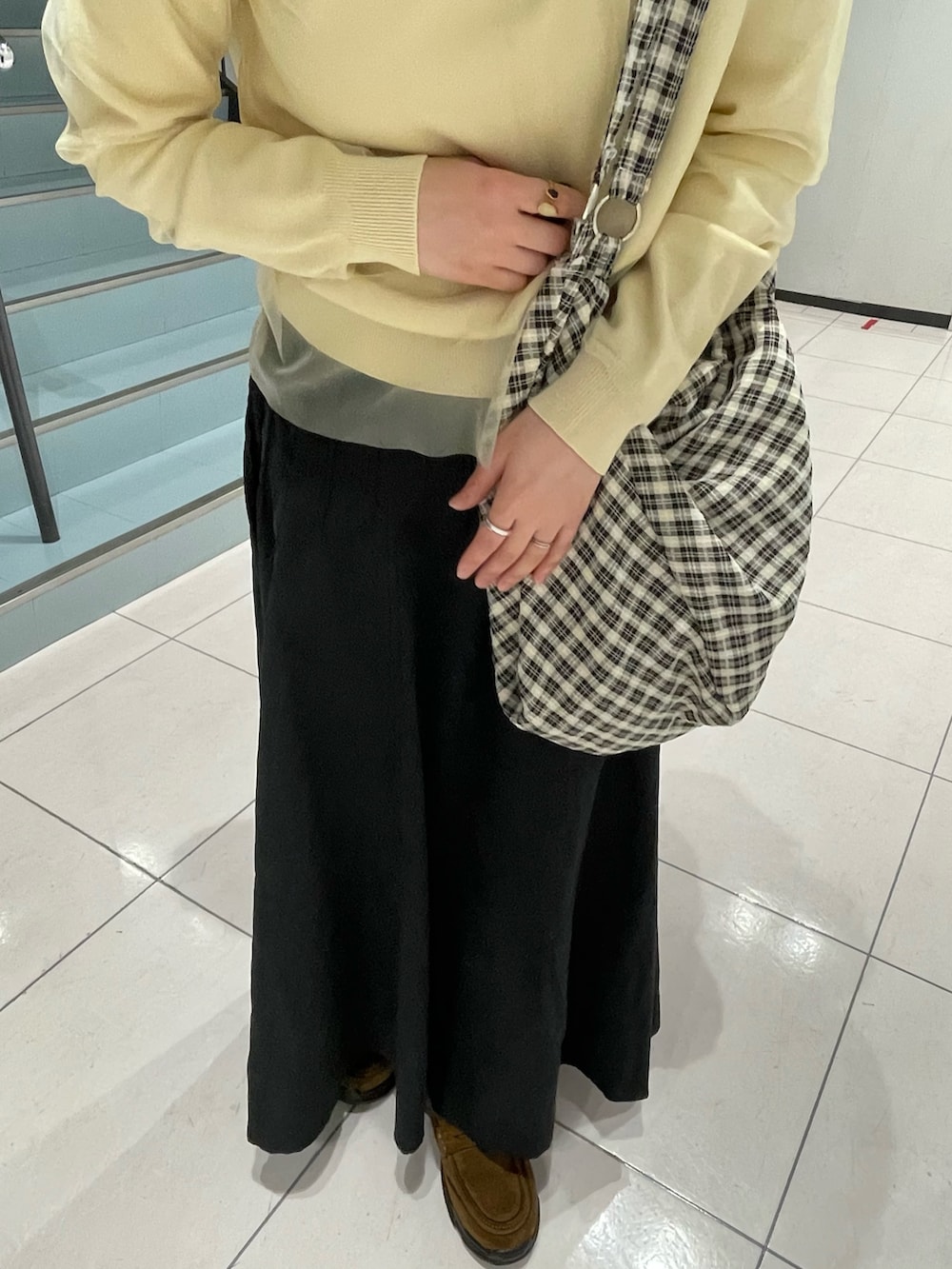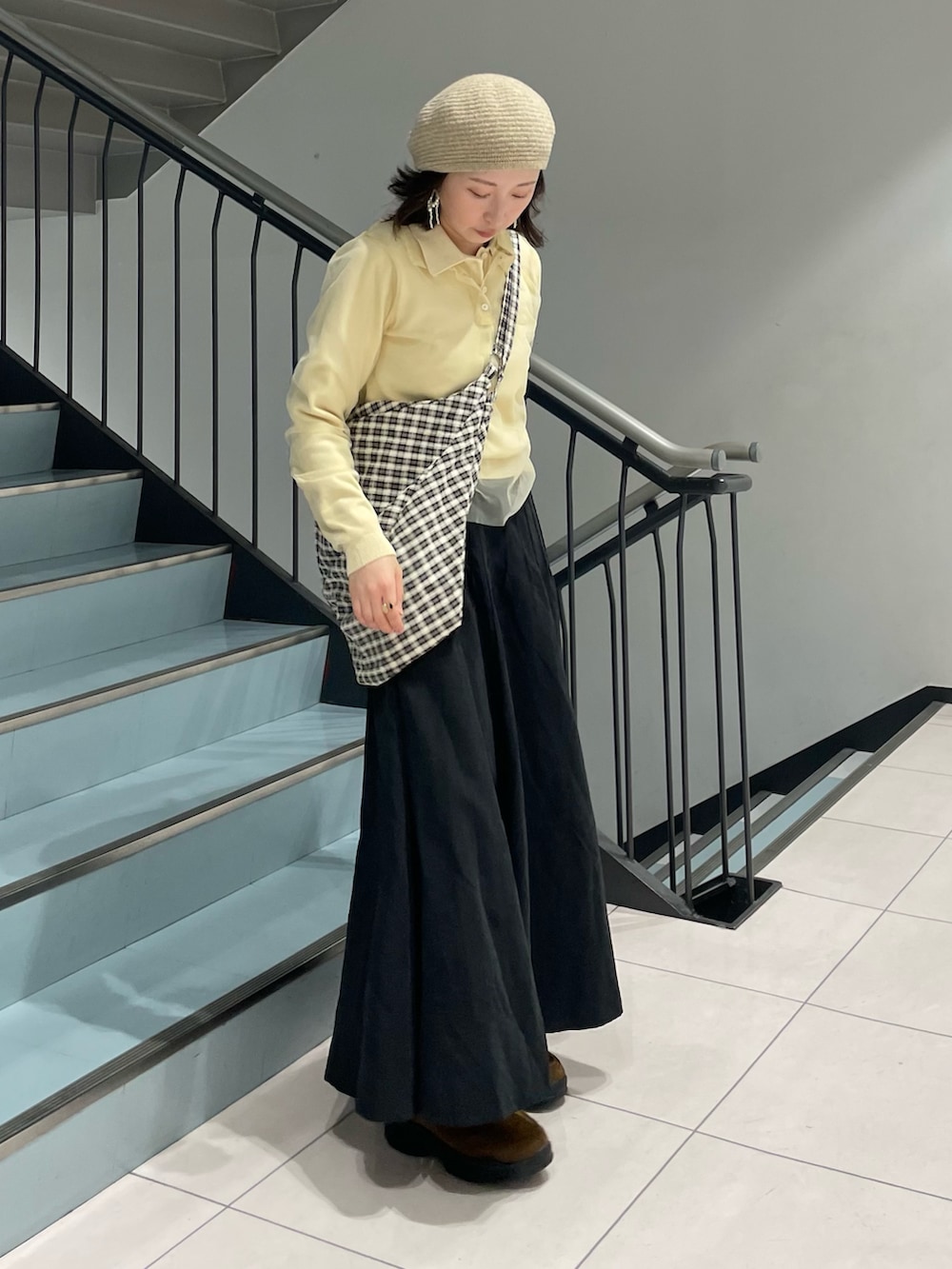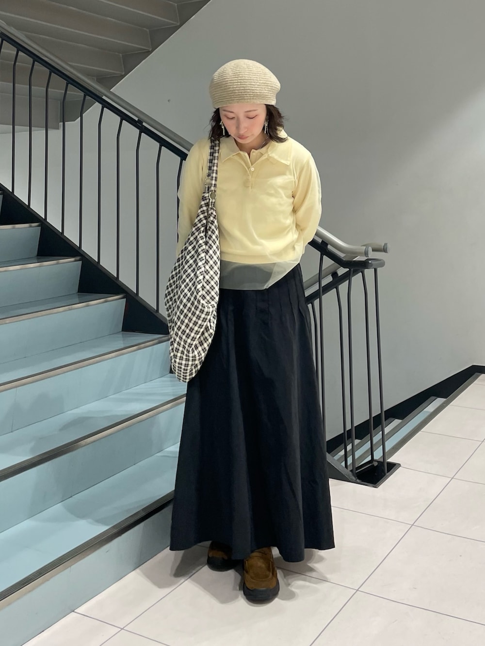 ポロニットとスラックスでオフィスカジュアルにも良しですが、キャッチーな小物を散りばめて、お出かけコーデに振りました!