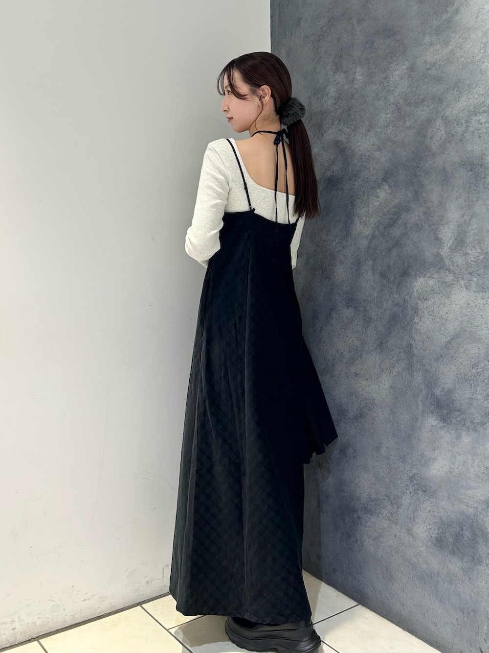 今回は背中の空いたインナーと合わせて、肩紐を首の後ろで結んで垂らしてみました✨揺れ感がとてもかわいかったです🫶