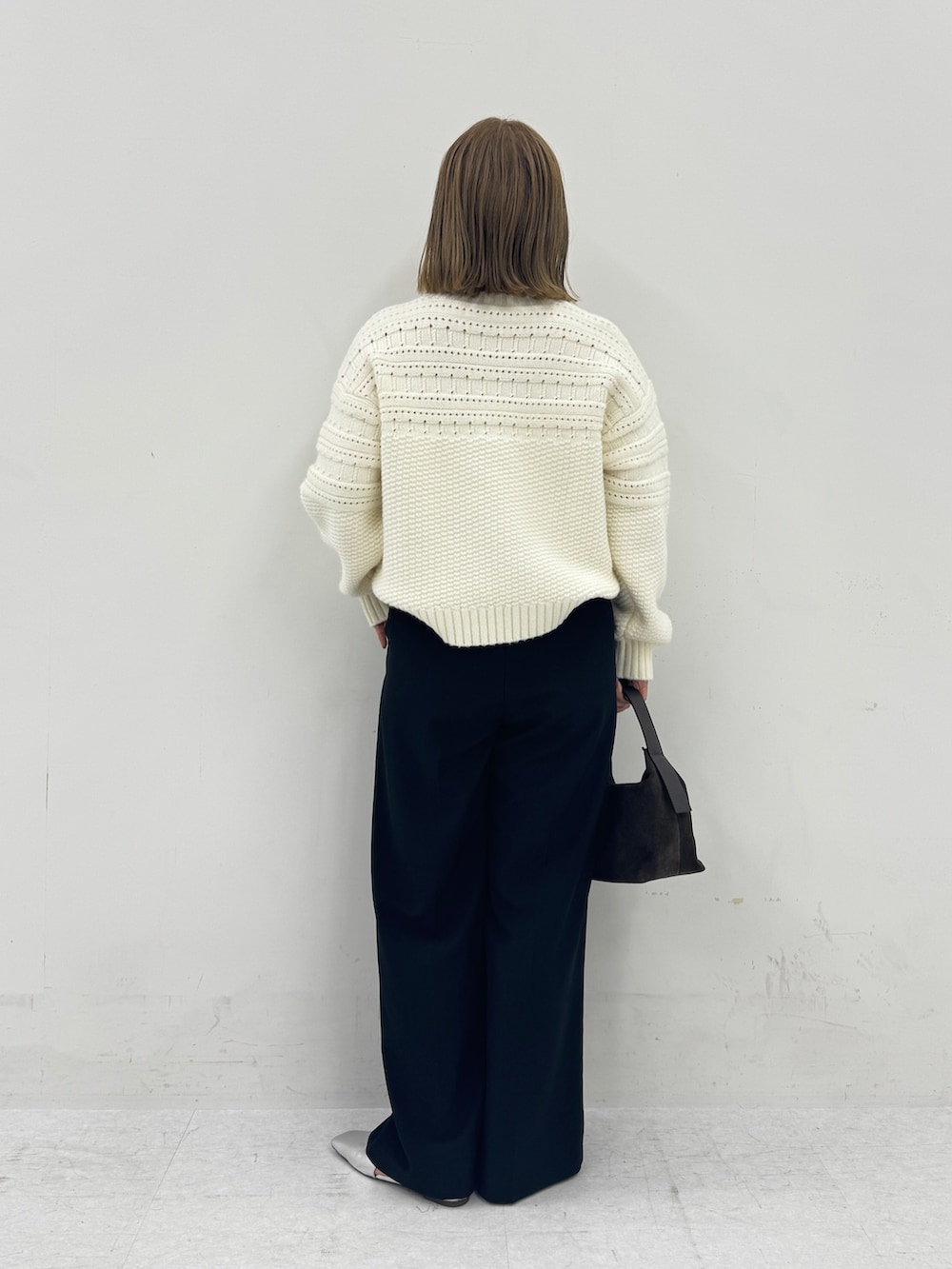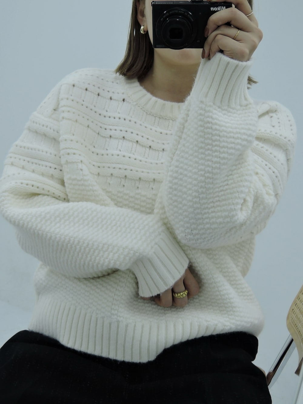 冬はコーディネートが暗くなりがちなので、白や黄色のニットもおすすめです♪