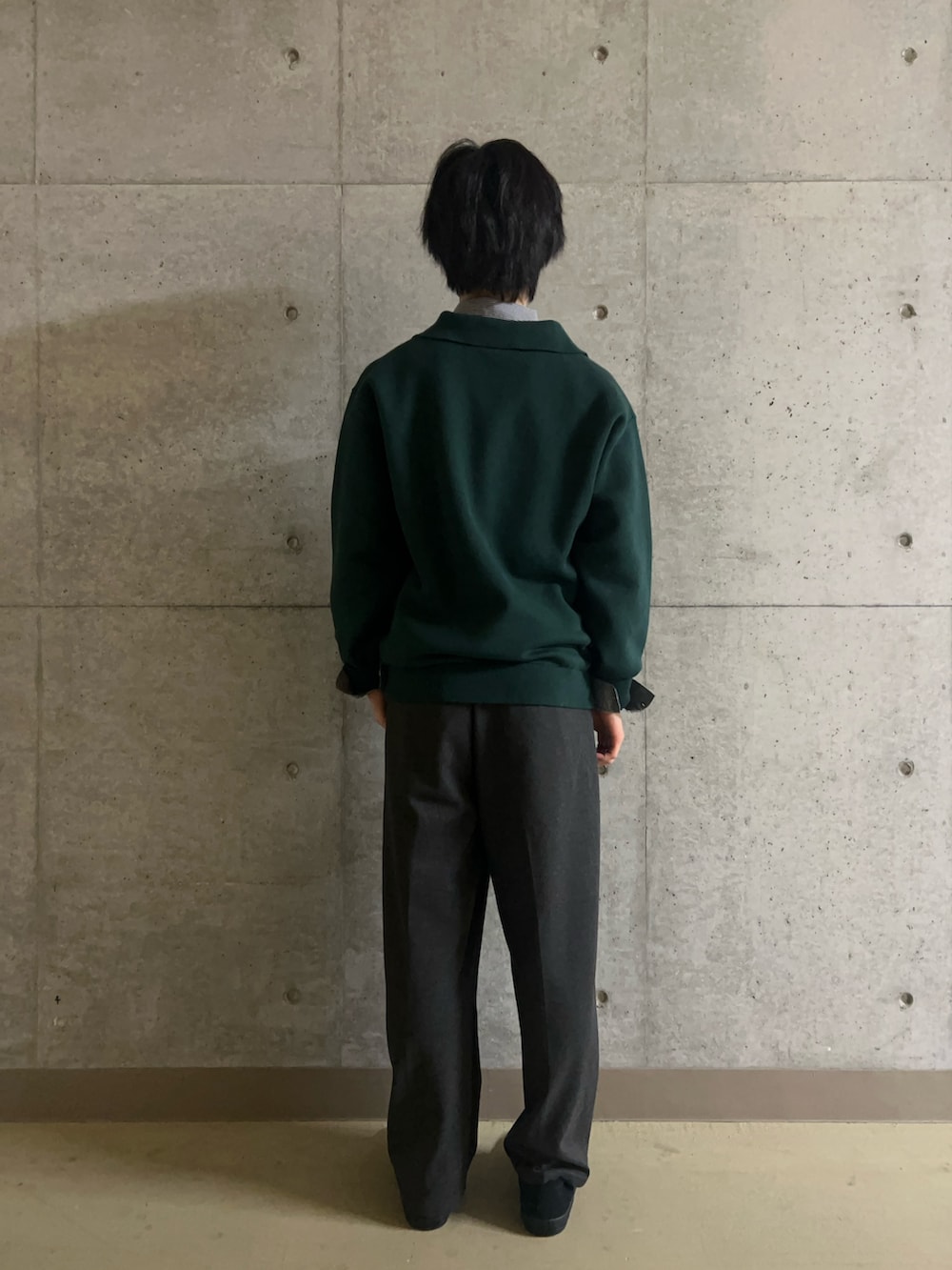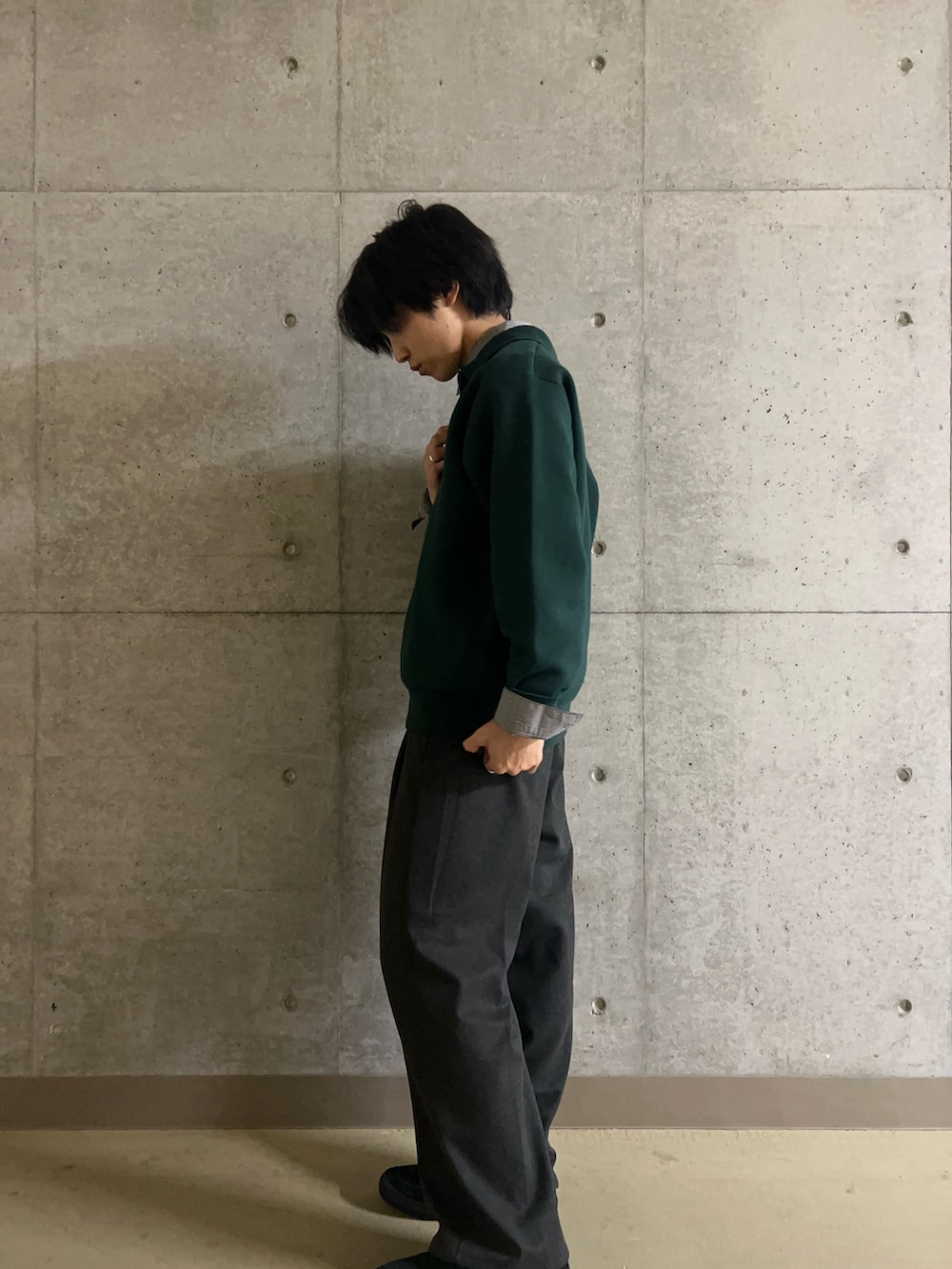 今回はニットのハーフジップにストライプシャツ、そして深みのあるチャコールのストレートスラックスを組み合わせることでシンプルだけど大人っぽいコーデになりました!