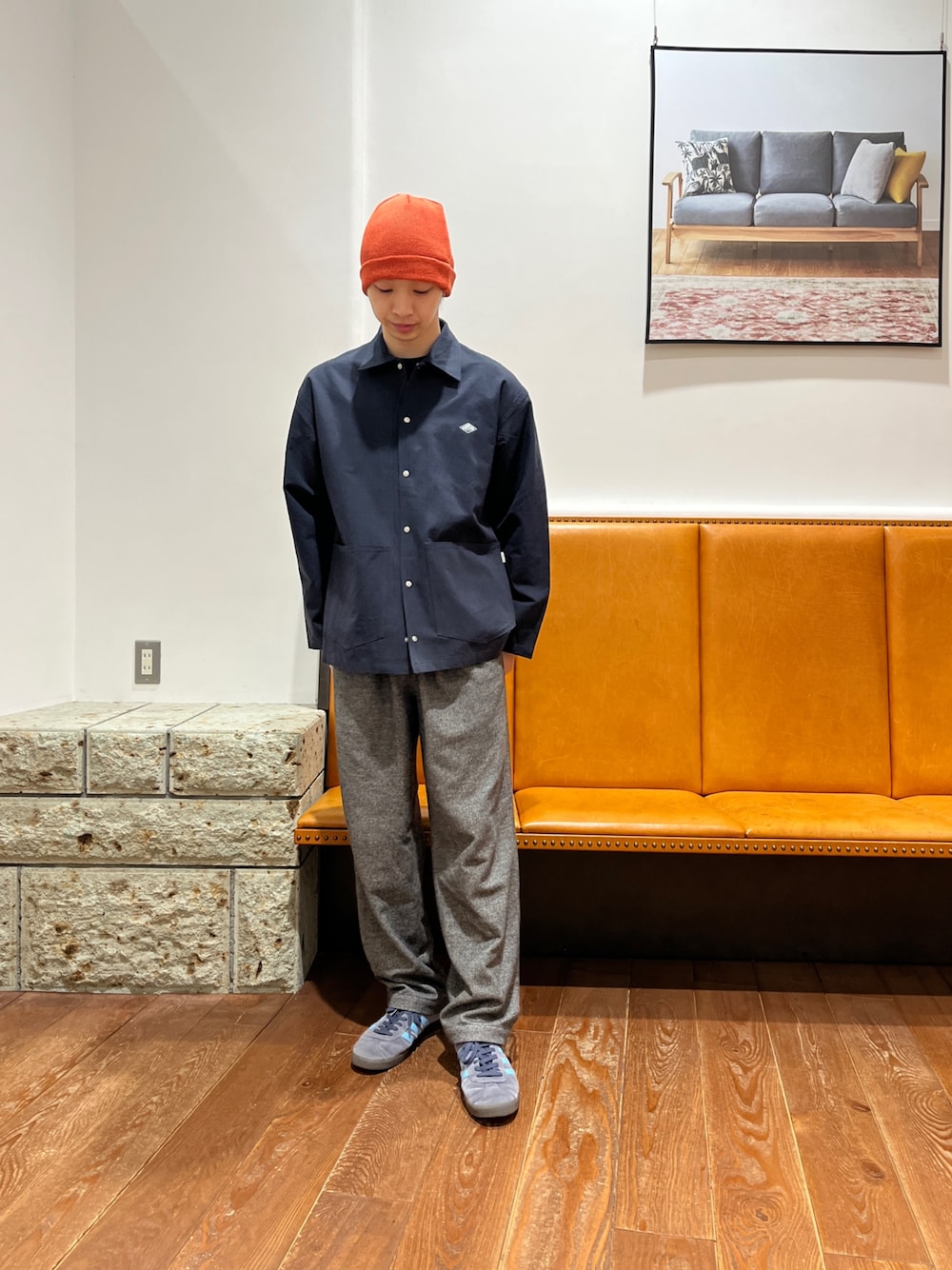 パンツは色味のある別注パンツで綺麗な形で合わせています!帽子は上げても下げても可愛らしいノースの帽子です!