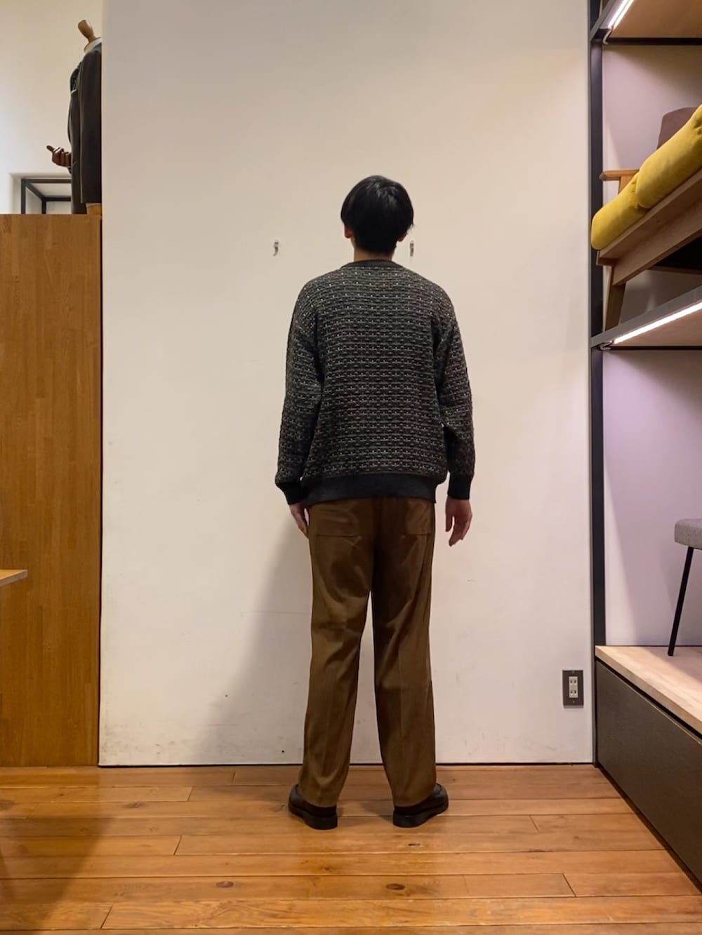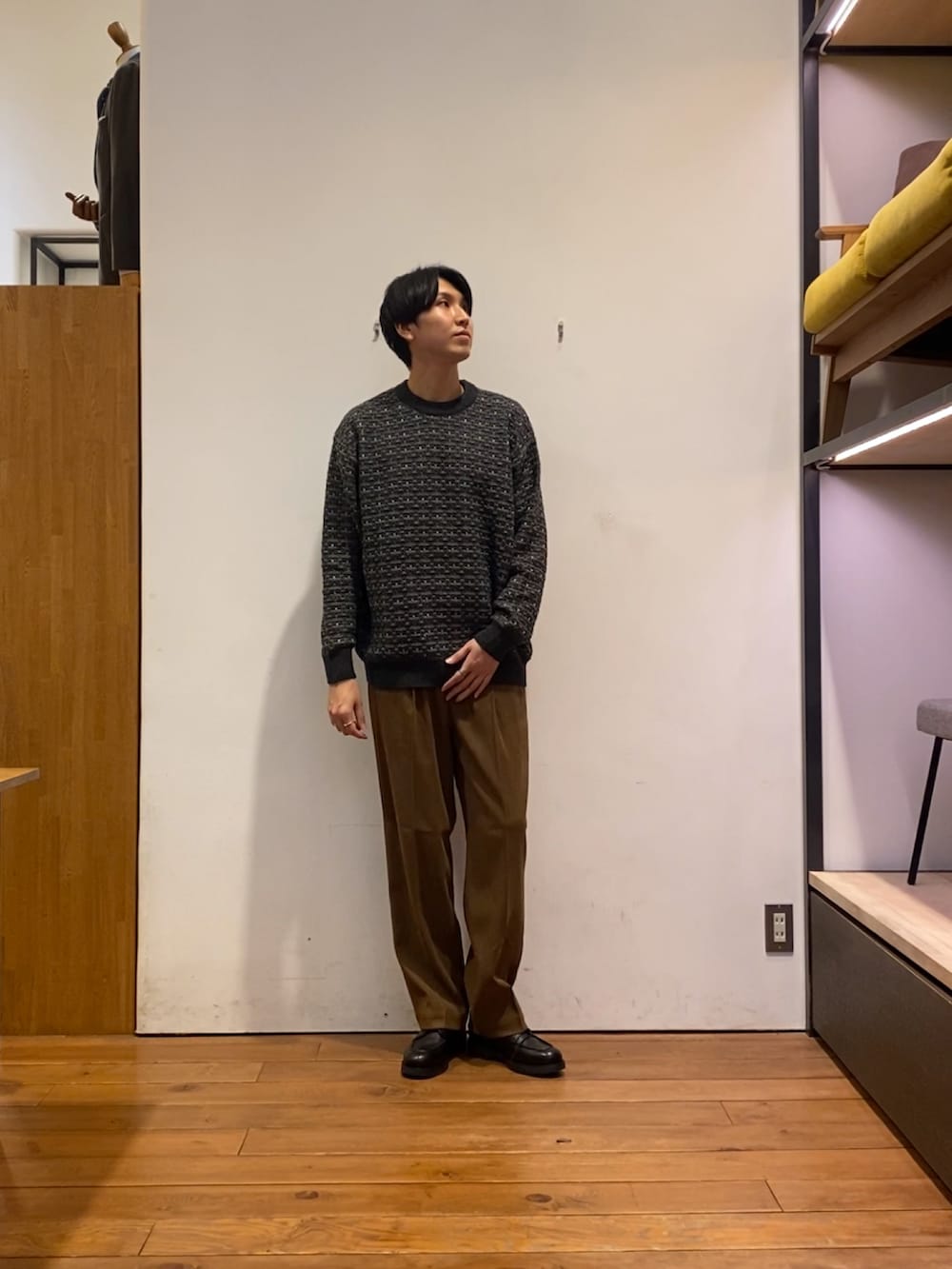 今回は、ニットとスエードライクのパンツと合わせてきれいめなコーディネートにしてみました!