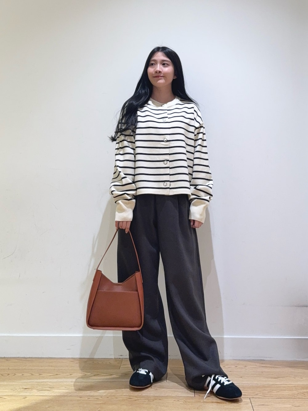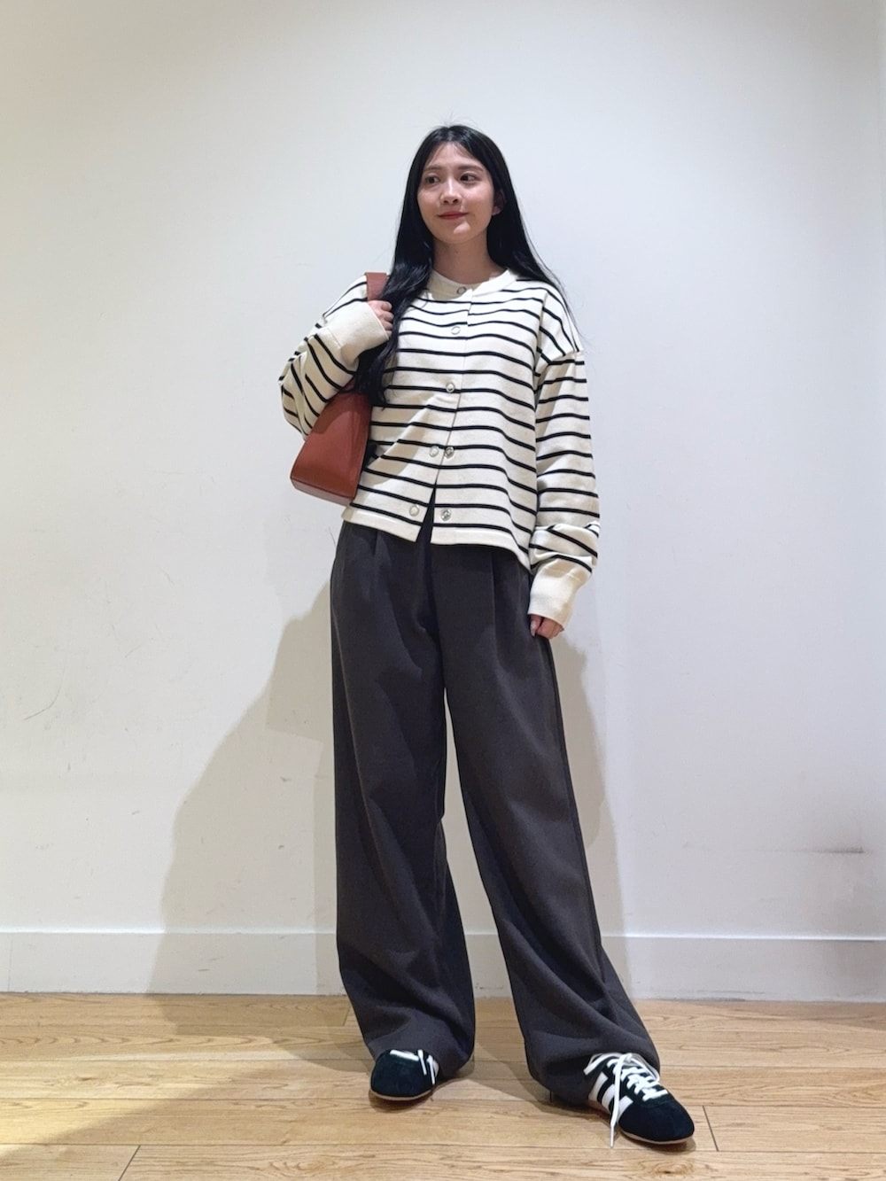 ワイドトラウザーは、お手入れが楽で149cmでぎりぎり引き摺らない丈でした!