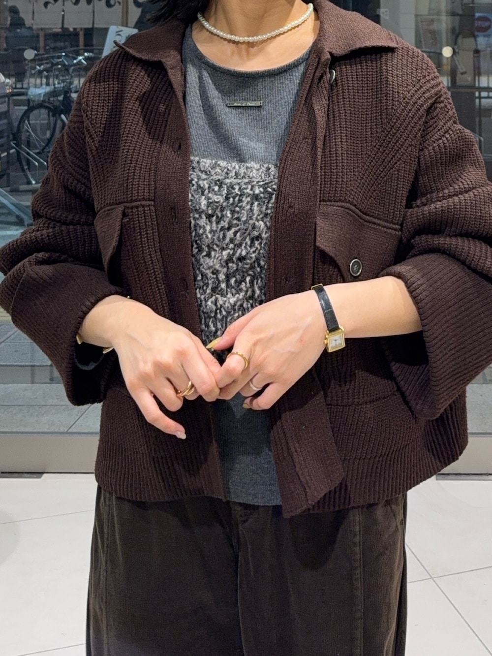 アウターはニット素材で