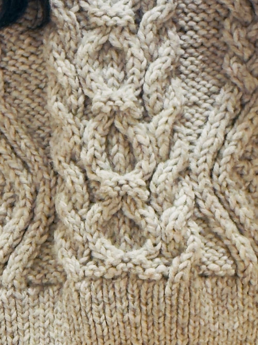 手編みでしっかり編み込まれていてアラン柄の立体感はとても高級感があります。
