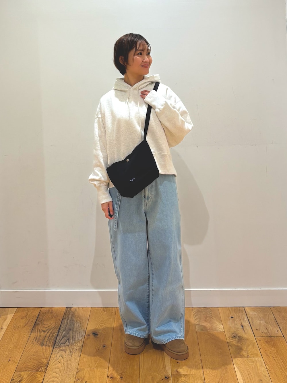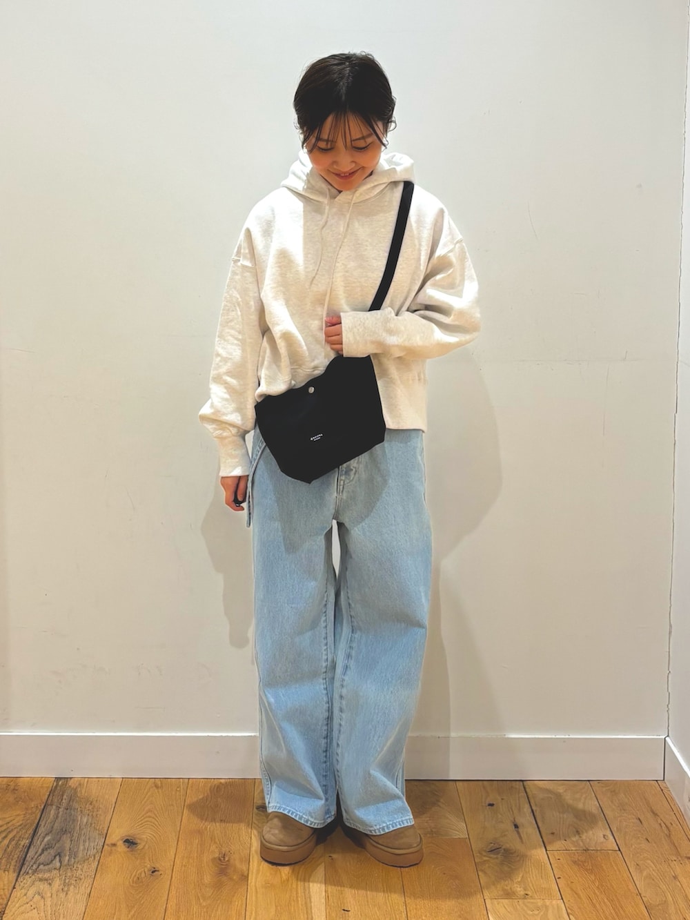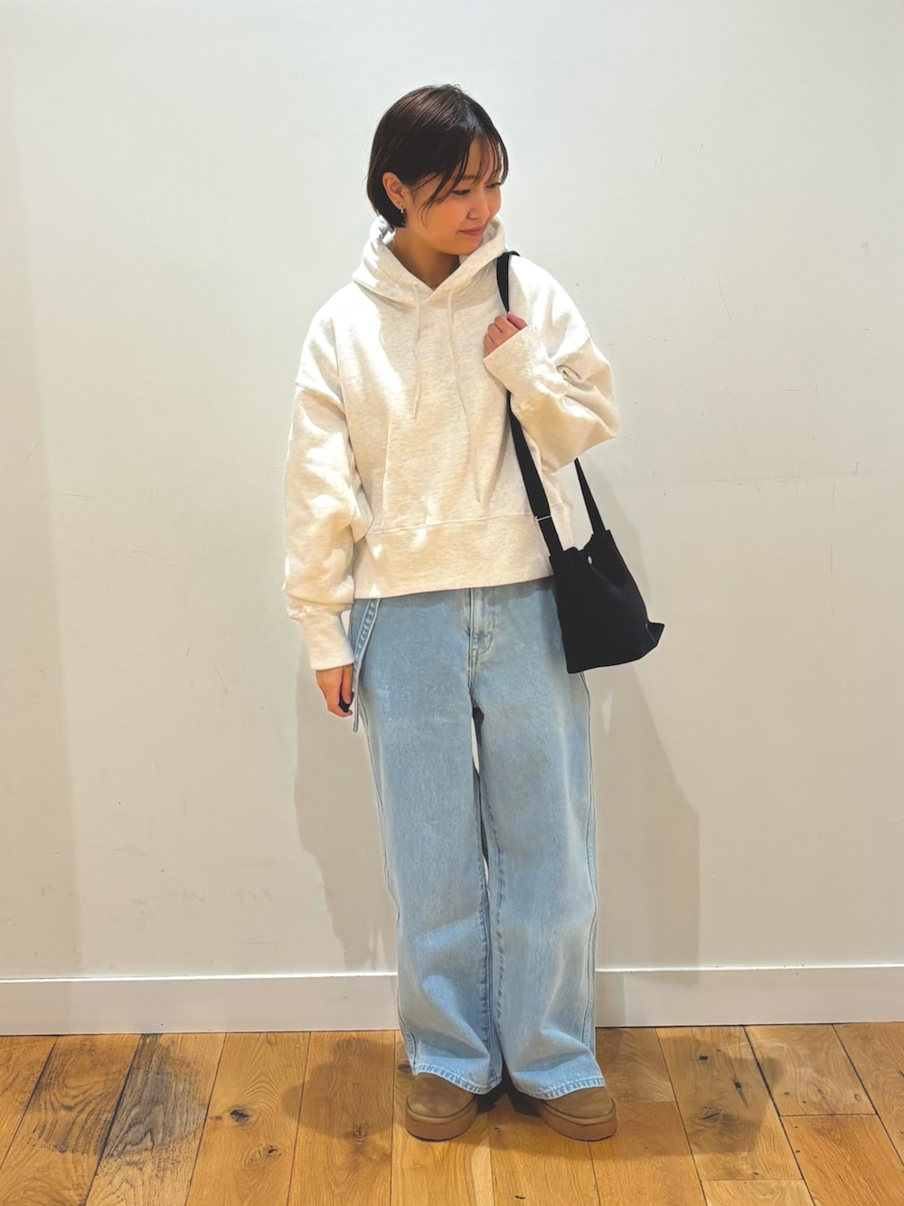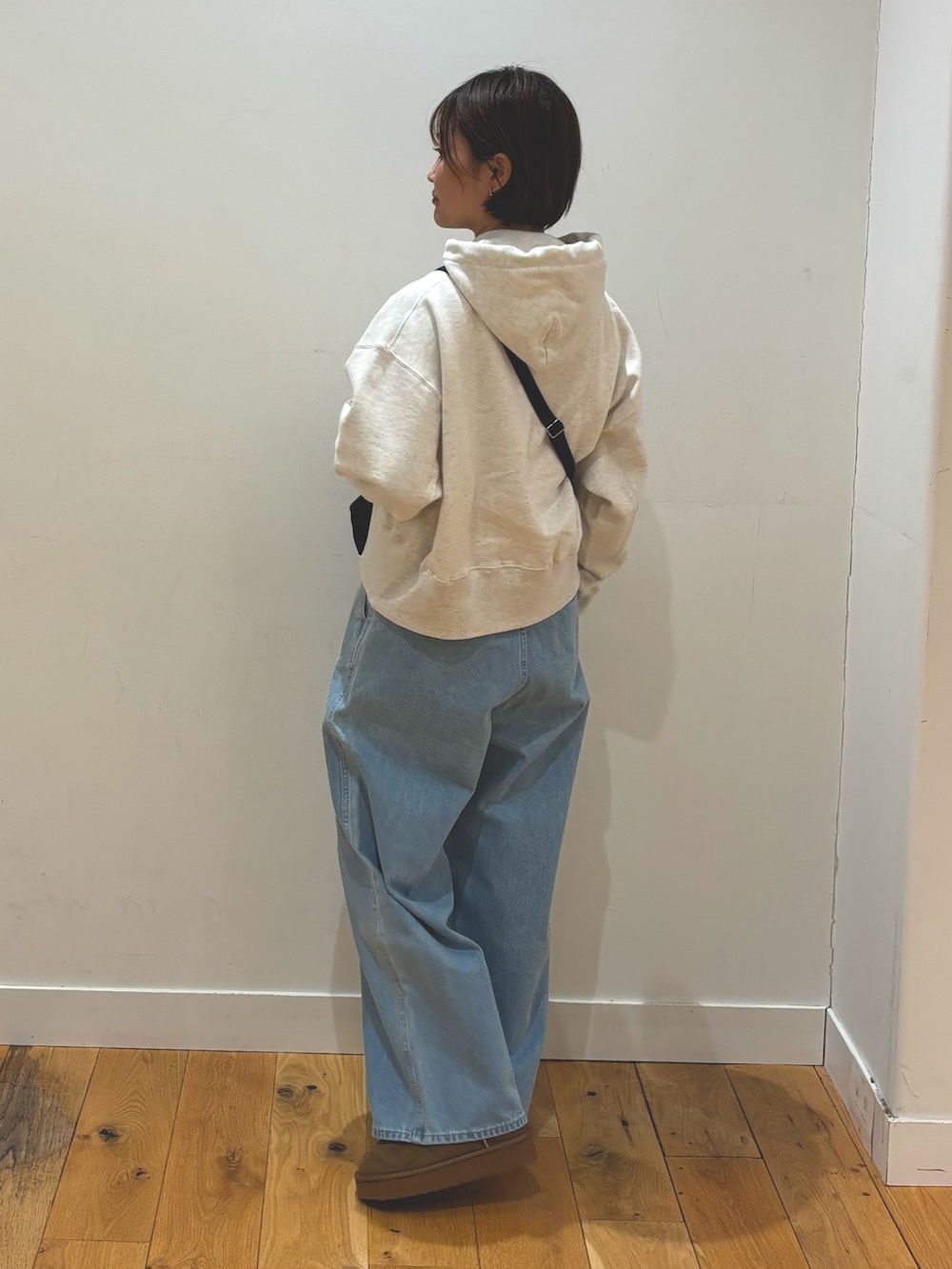 パーカーは丈感が短めなので太めのデニムやパンツと相性がいいです。