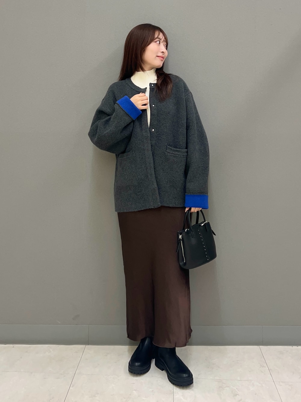 リブハイ×サテンスカートでキレイめに合わせてみました◎