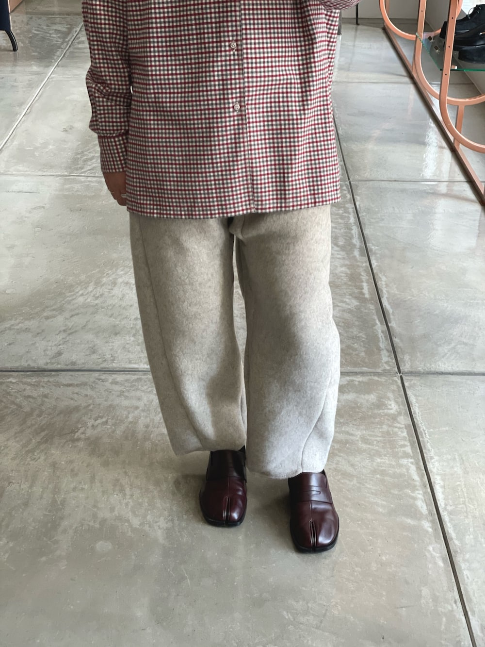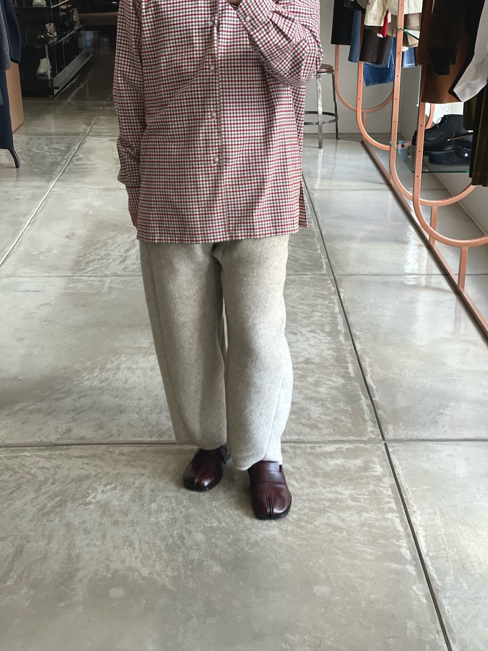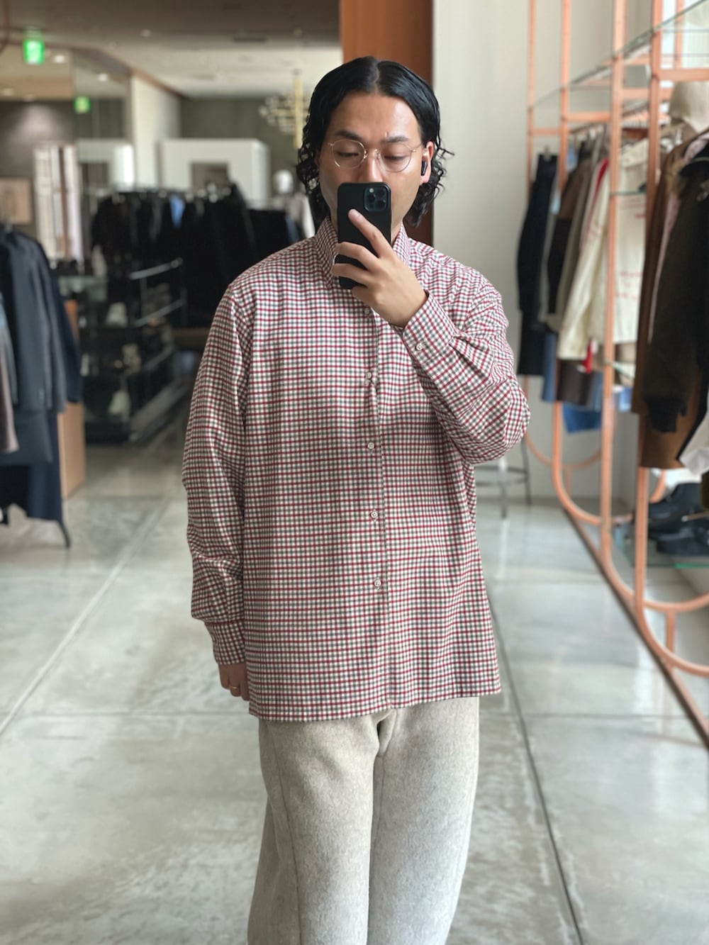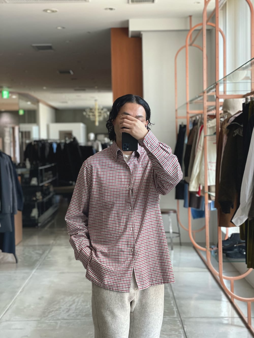 本日はmaateeのチェックシャツにseeallのスウェットパンツのコーディネート