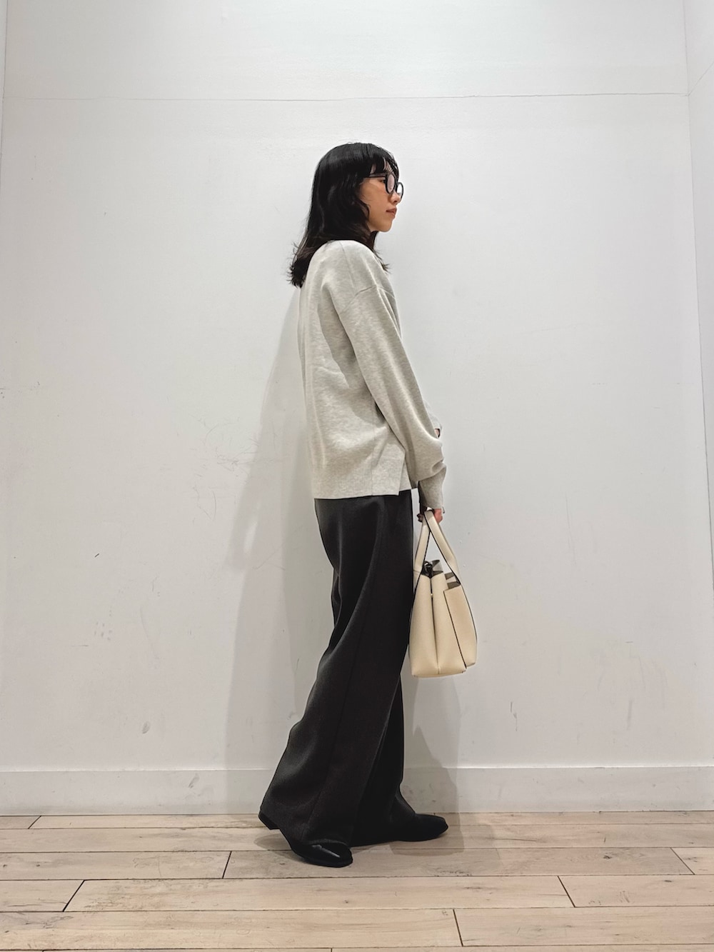 トップスはニットですが素材がコットンとカシミヤなのでチクチク感なくサラッとしています!