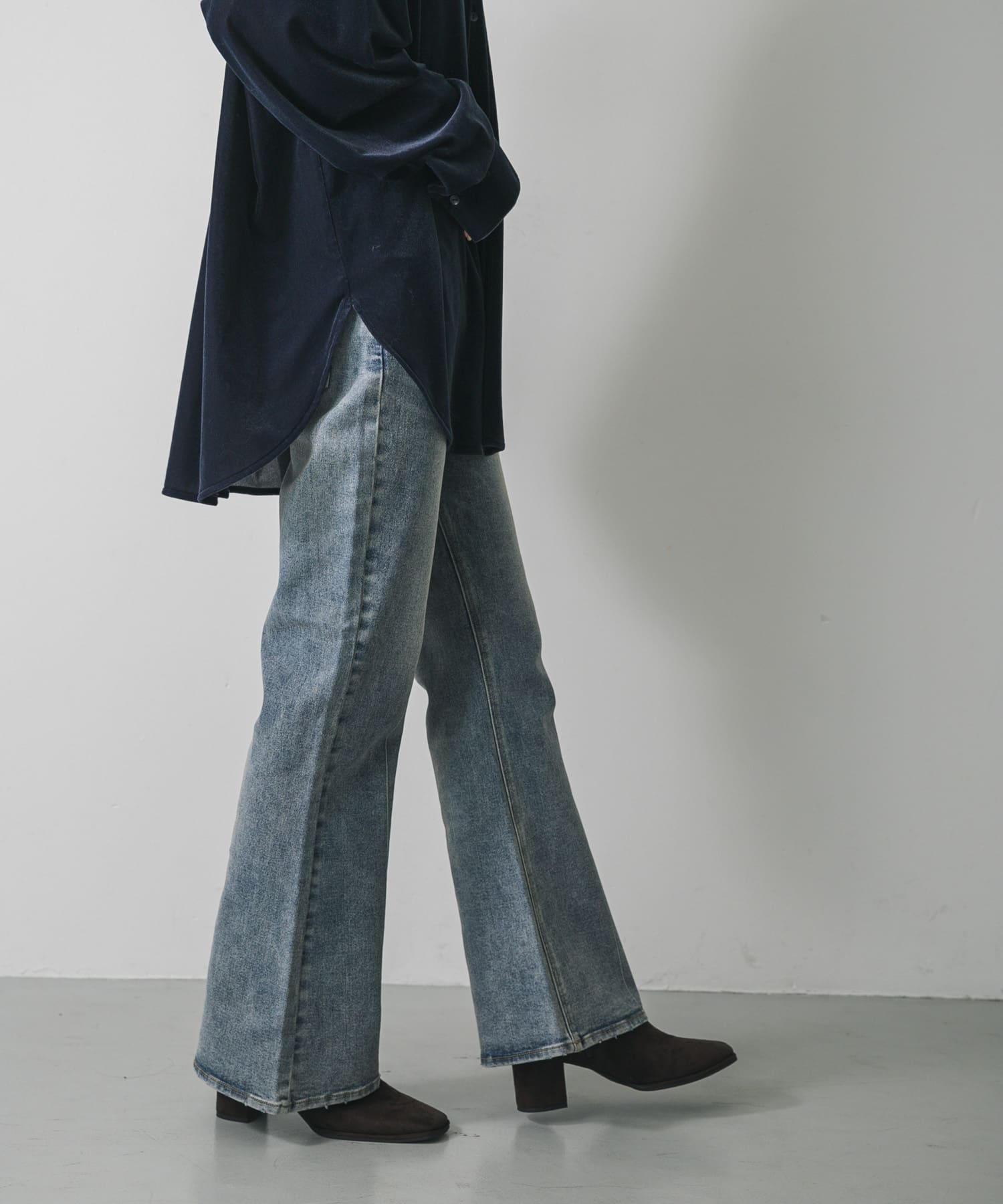 プラストフレアデニムはストレッチがとても効いていてフィット感がありながら動きやすさも抜群です ⭐︎
