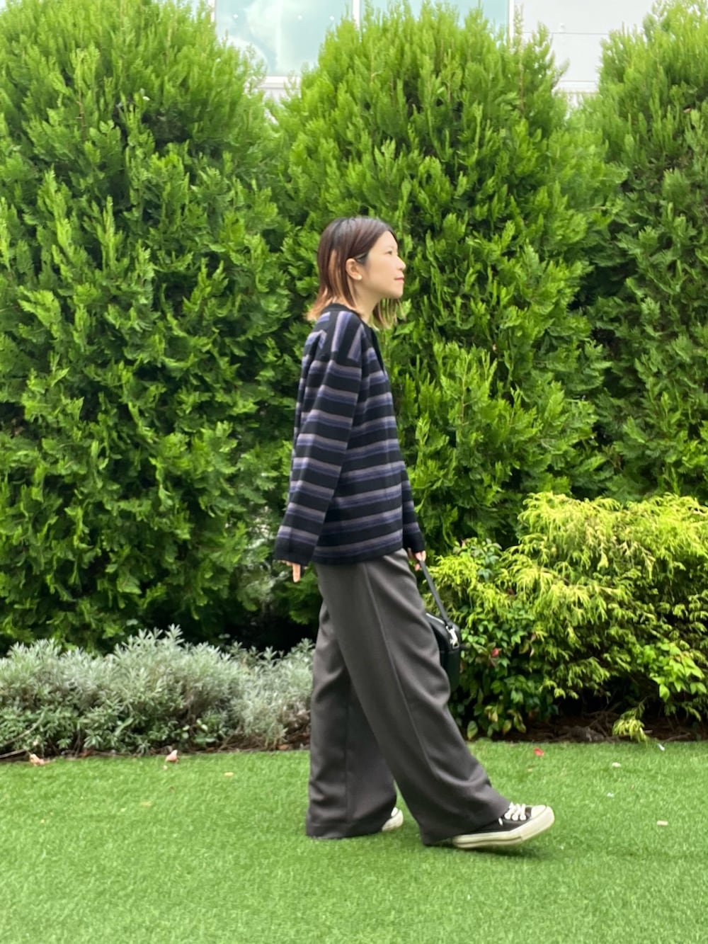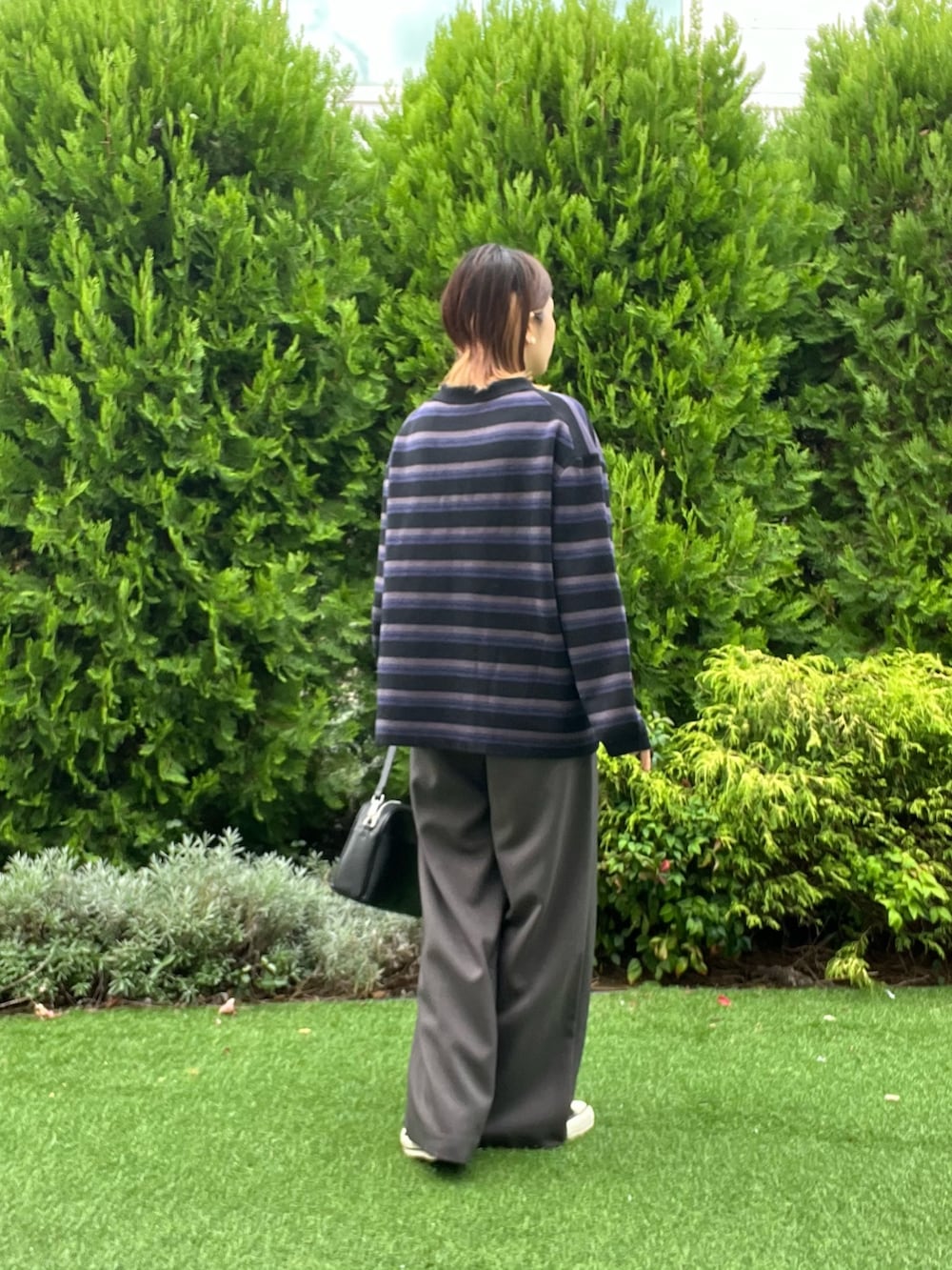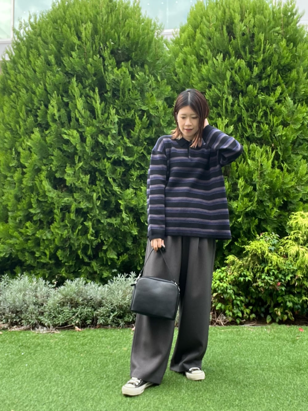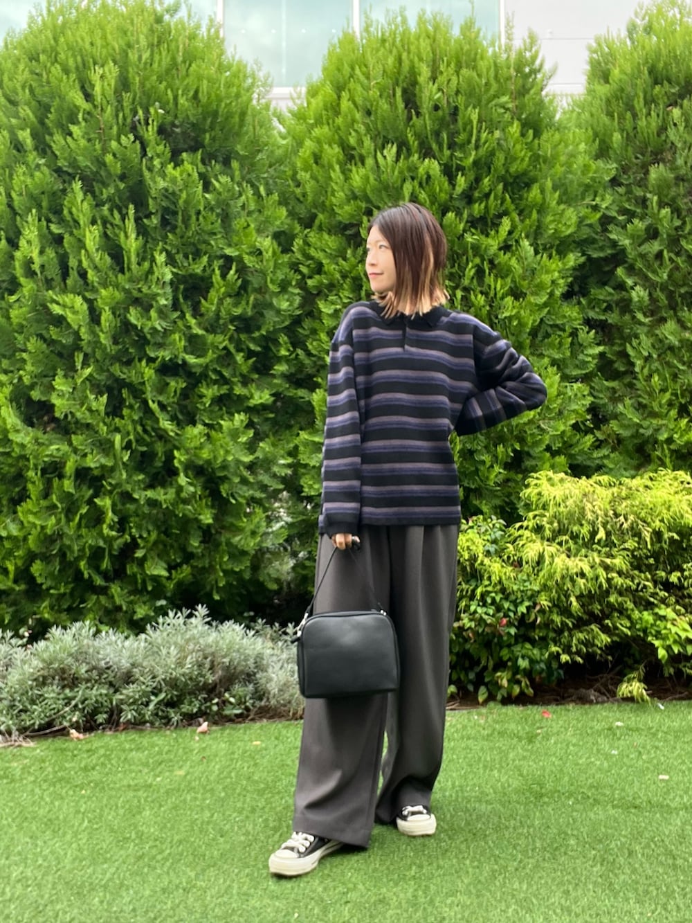 柔らかい肌触りのEKALのポロニットは配色が可愛くおすすめです!ゆったりとしたサイズ感ですが落ち感があるのでワイドパンツやスカートとも相性が良いです🐏