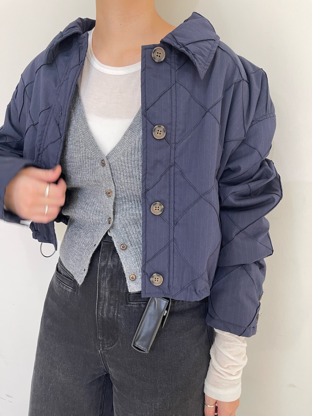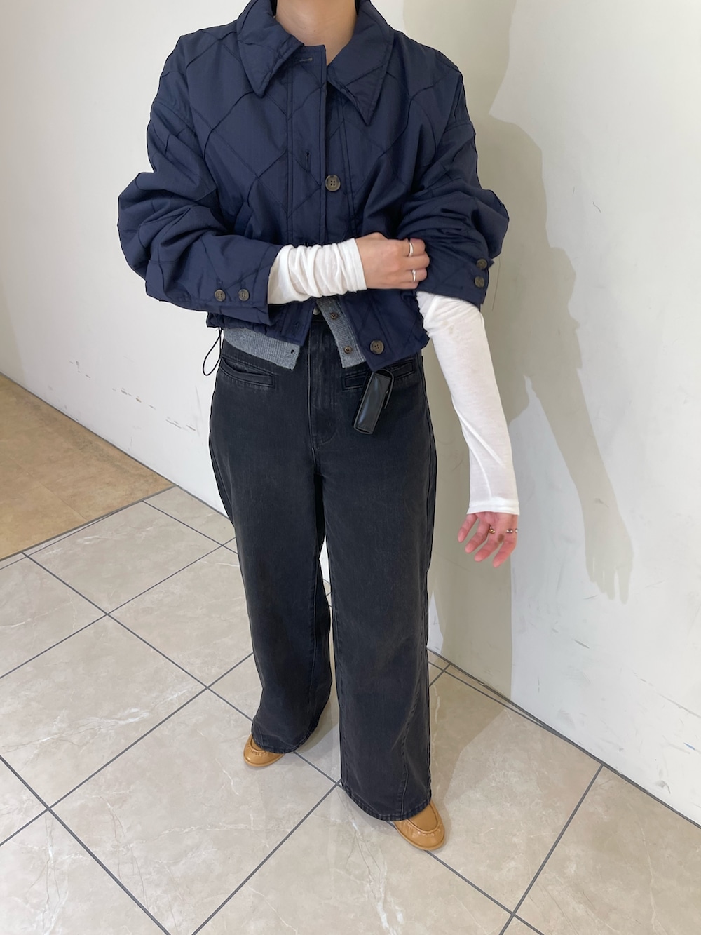 ラフなアウターはビスチェを仕込んで女っぽくきるのがおすすめです!