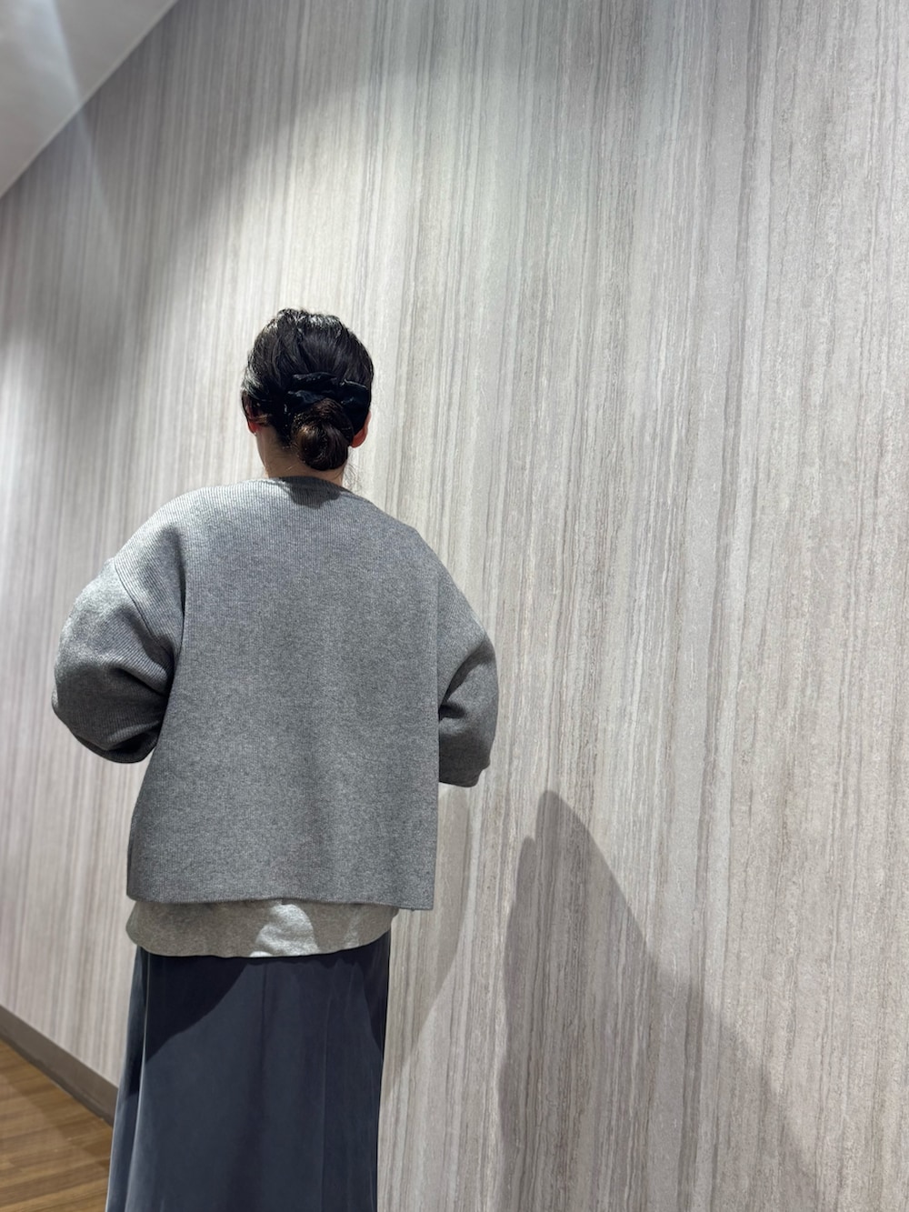 もっちりとした質感が心地よく、カーディガンのように軽やかに羽織れるため、気温調整が難しい季節にも頼れる一着です。