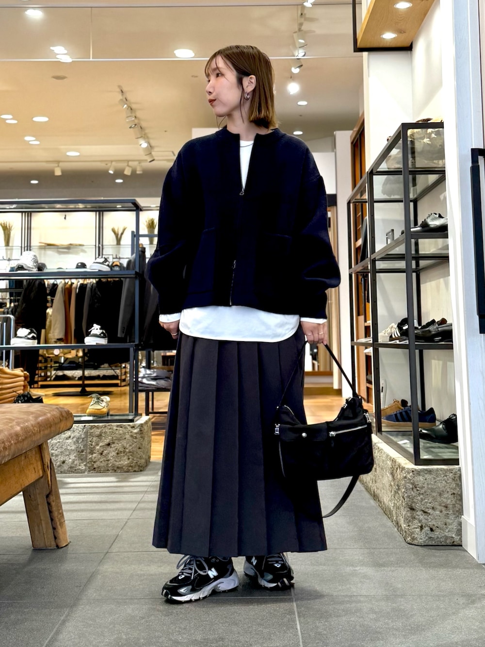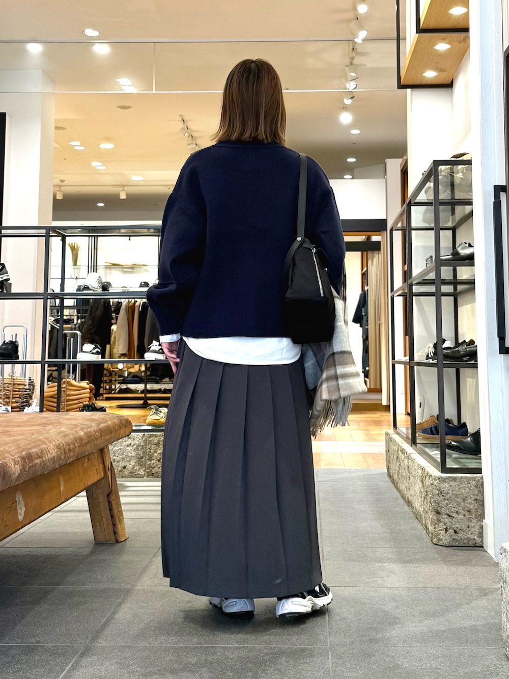 ヒダが太く甘すぎないプリーツスカートは、落ち着いた印象に。しっかり長さがあり158cmの私でぴったりサイズです!ニットやスウェットにこれから合わせて着たいアイテムです◎