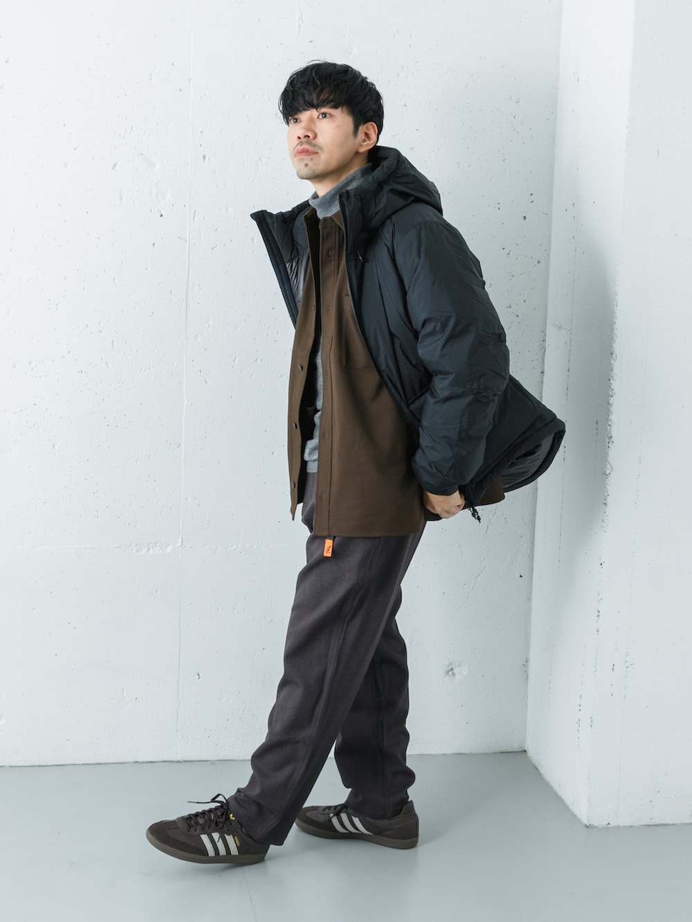 暖かい素材のアイテムを組み合わせながらスッキリした印象に見せるのがポイント◎