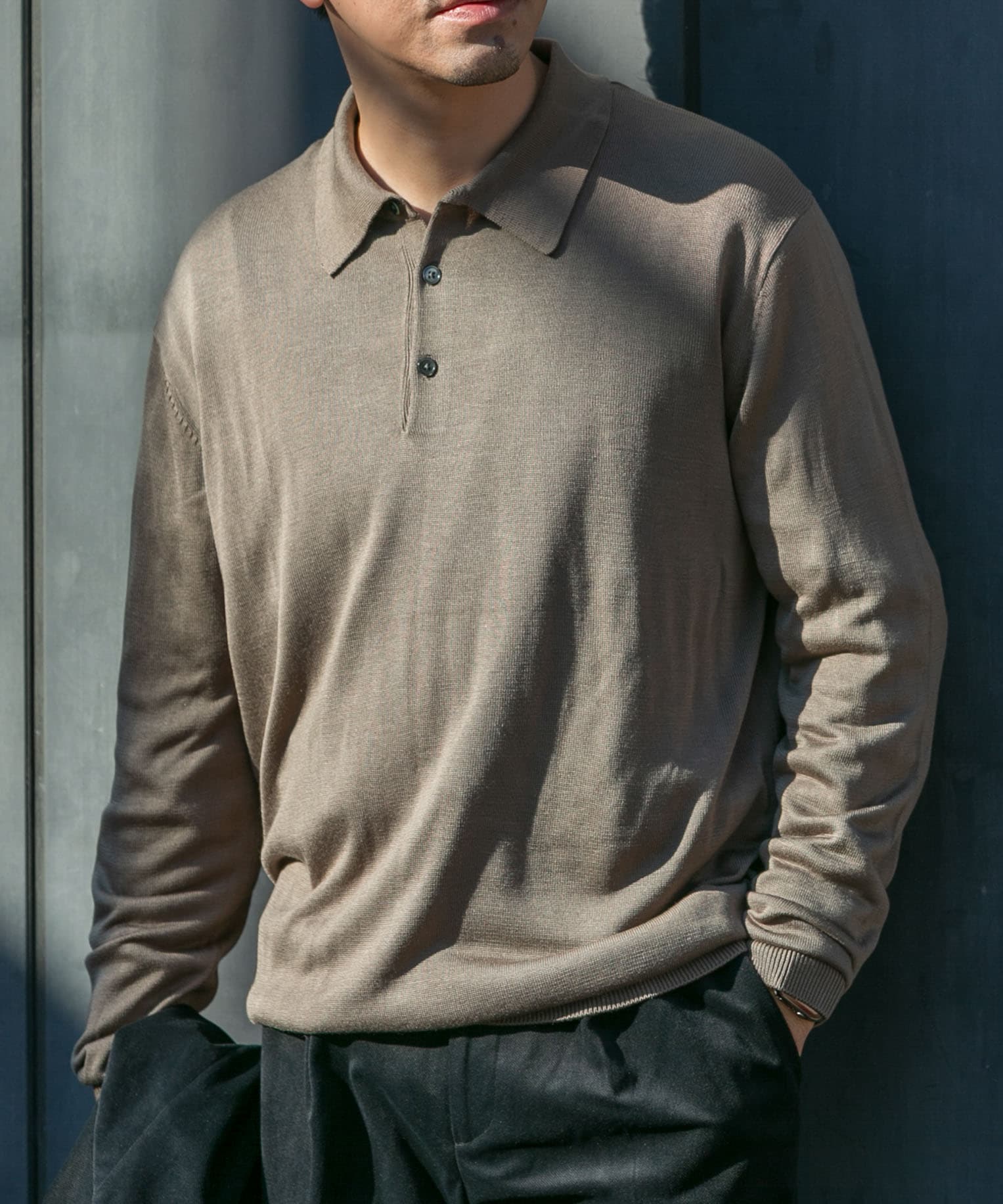 起毛感がありながら光沢感もある暖かくてキレイに見せるセットアップにニットポロで暖かいセットアップスタイル!