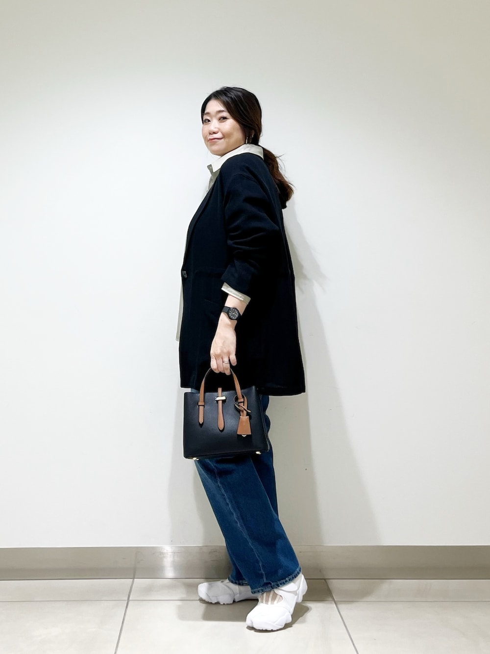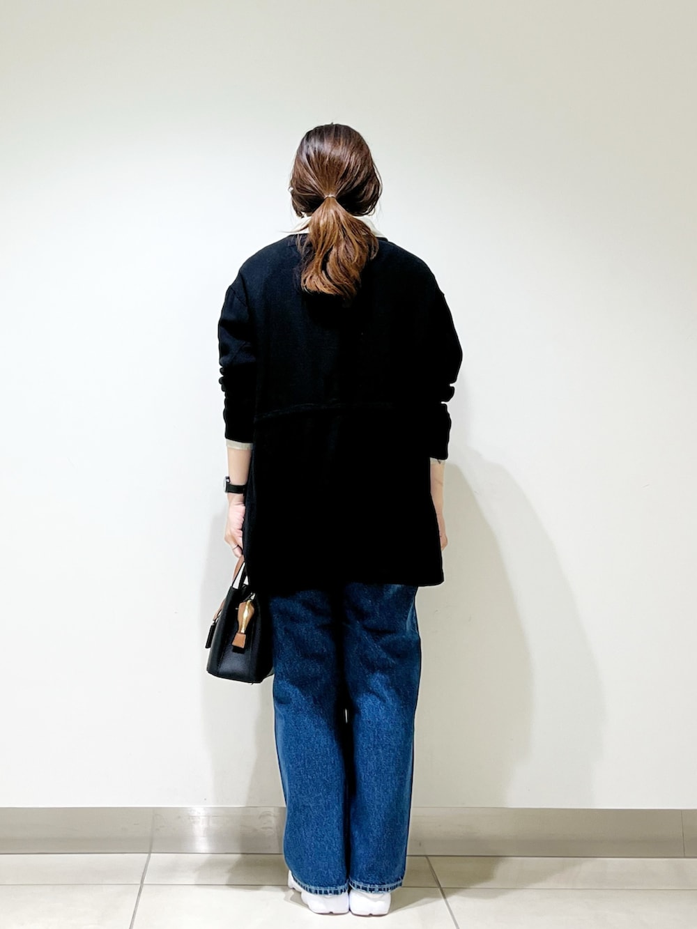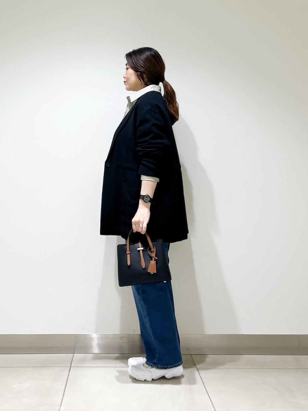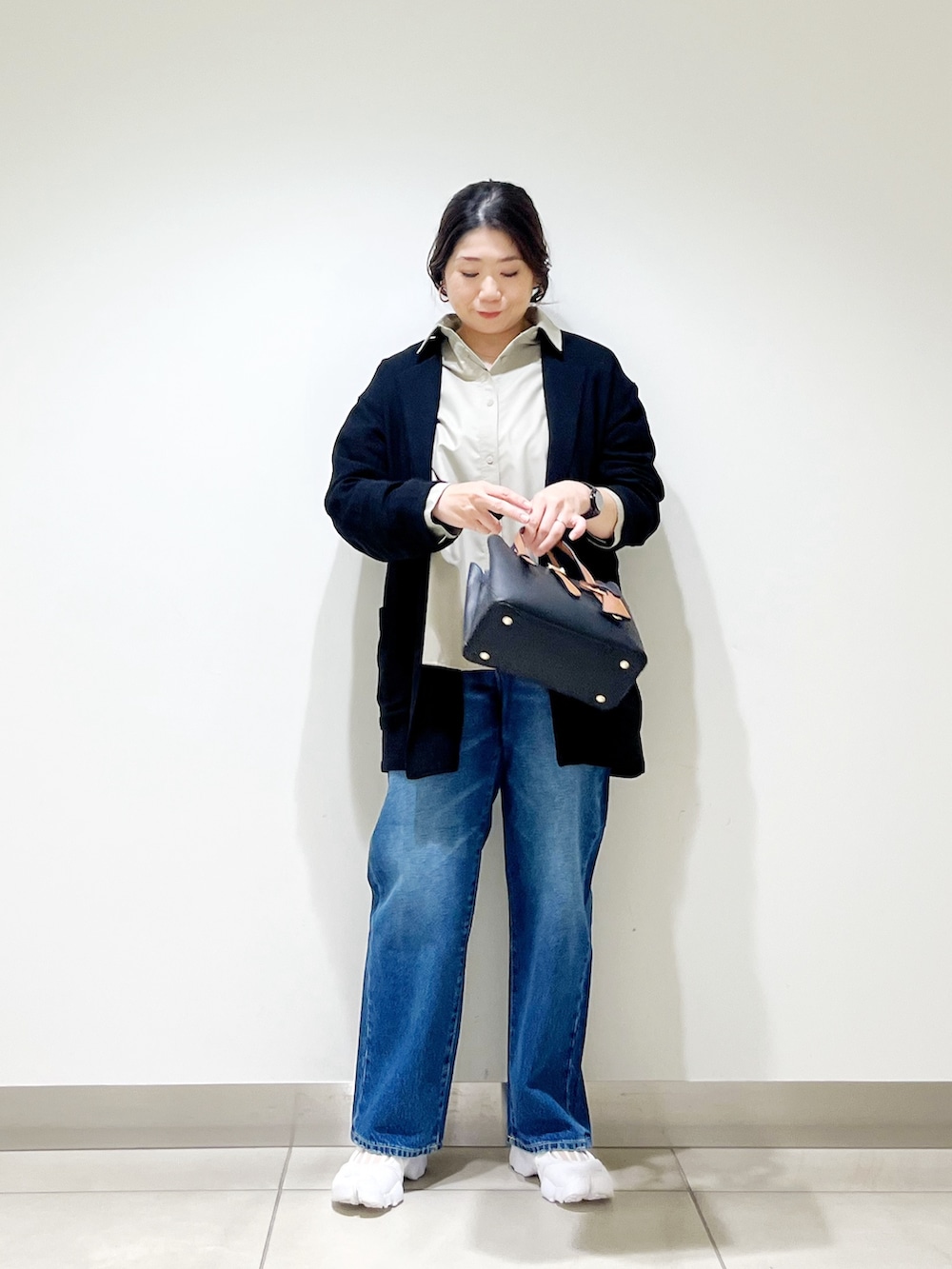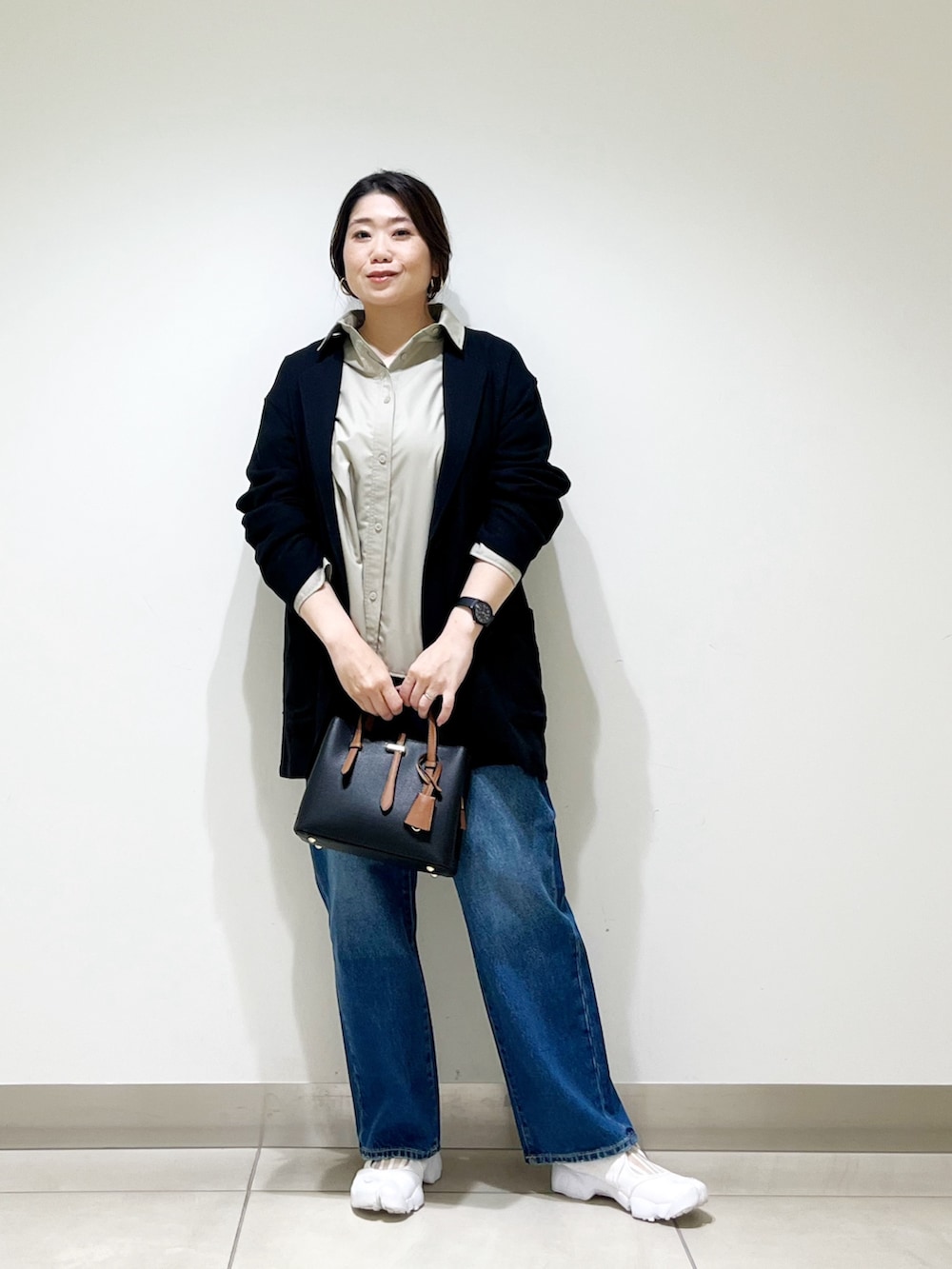隠したいところを隠してくれるのに、なだらかに落ち感のあるシャツを主役にシンプルなスタイリングにしました☆
