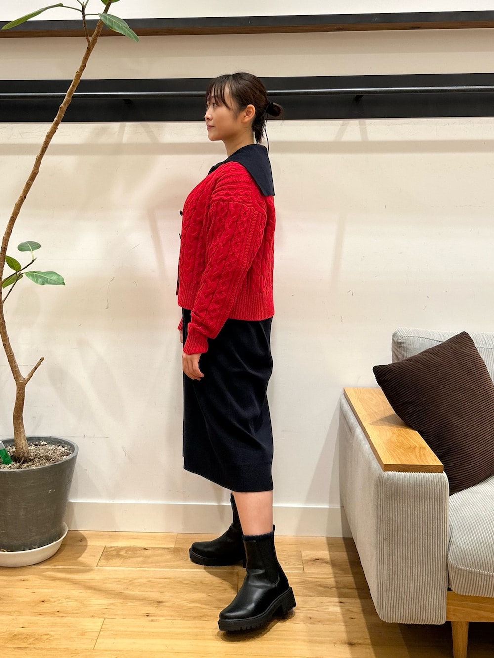 襟を出してカーディガンを羽織ると、かわいらしい印象になります。