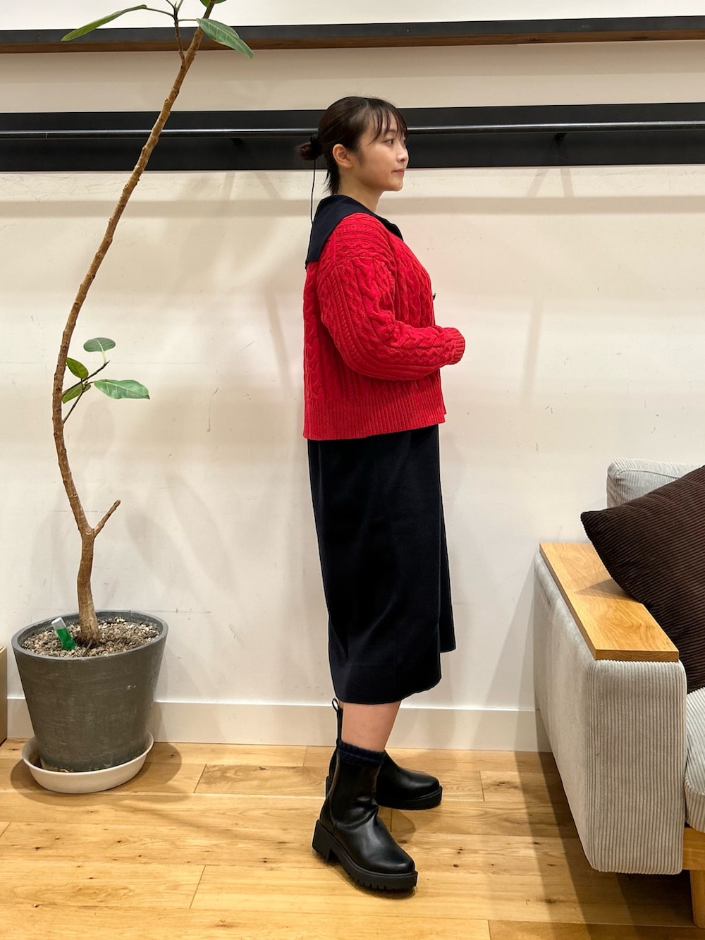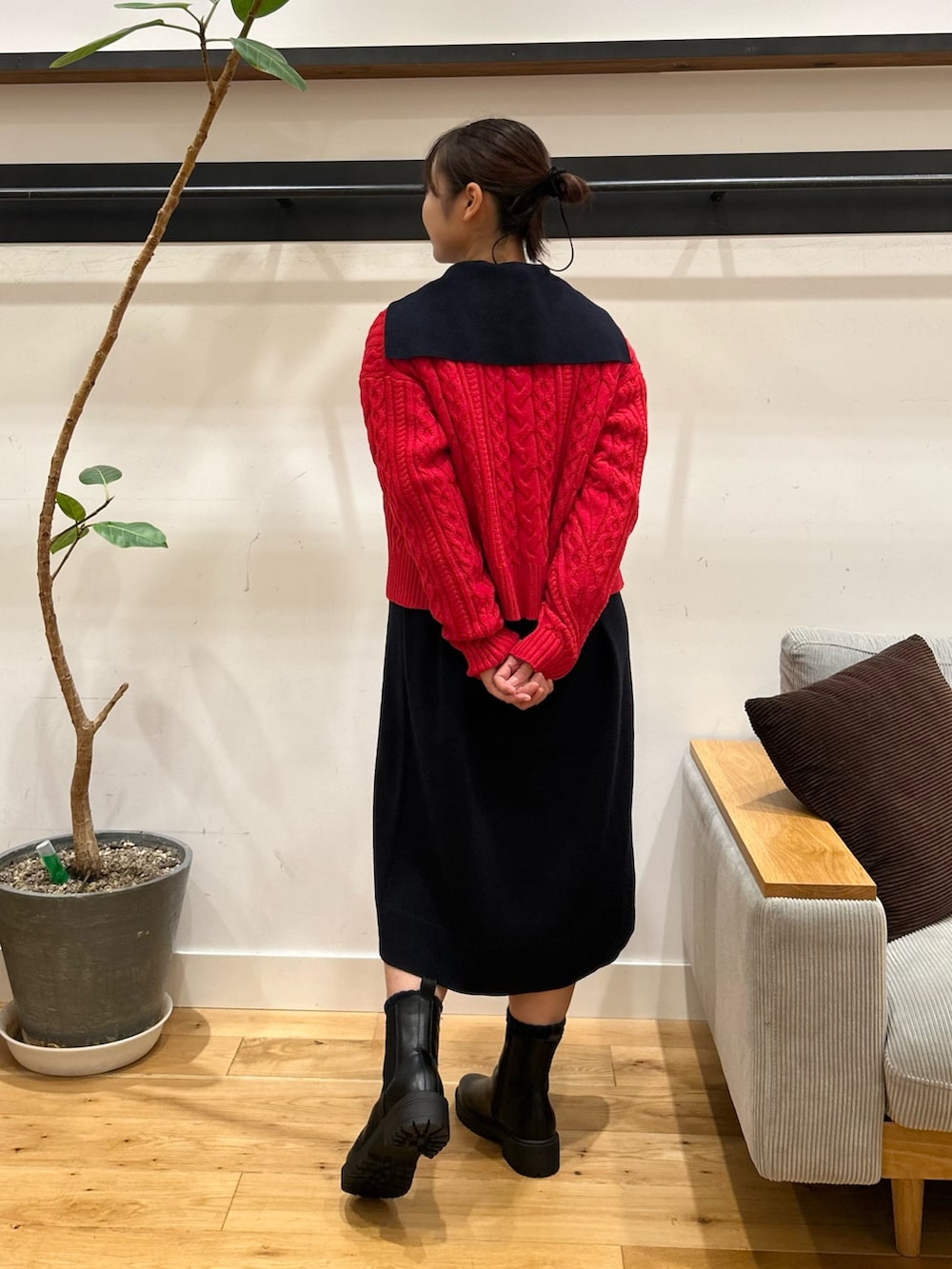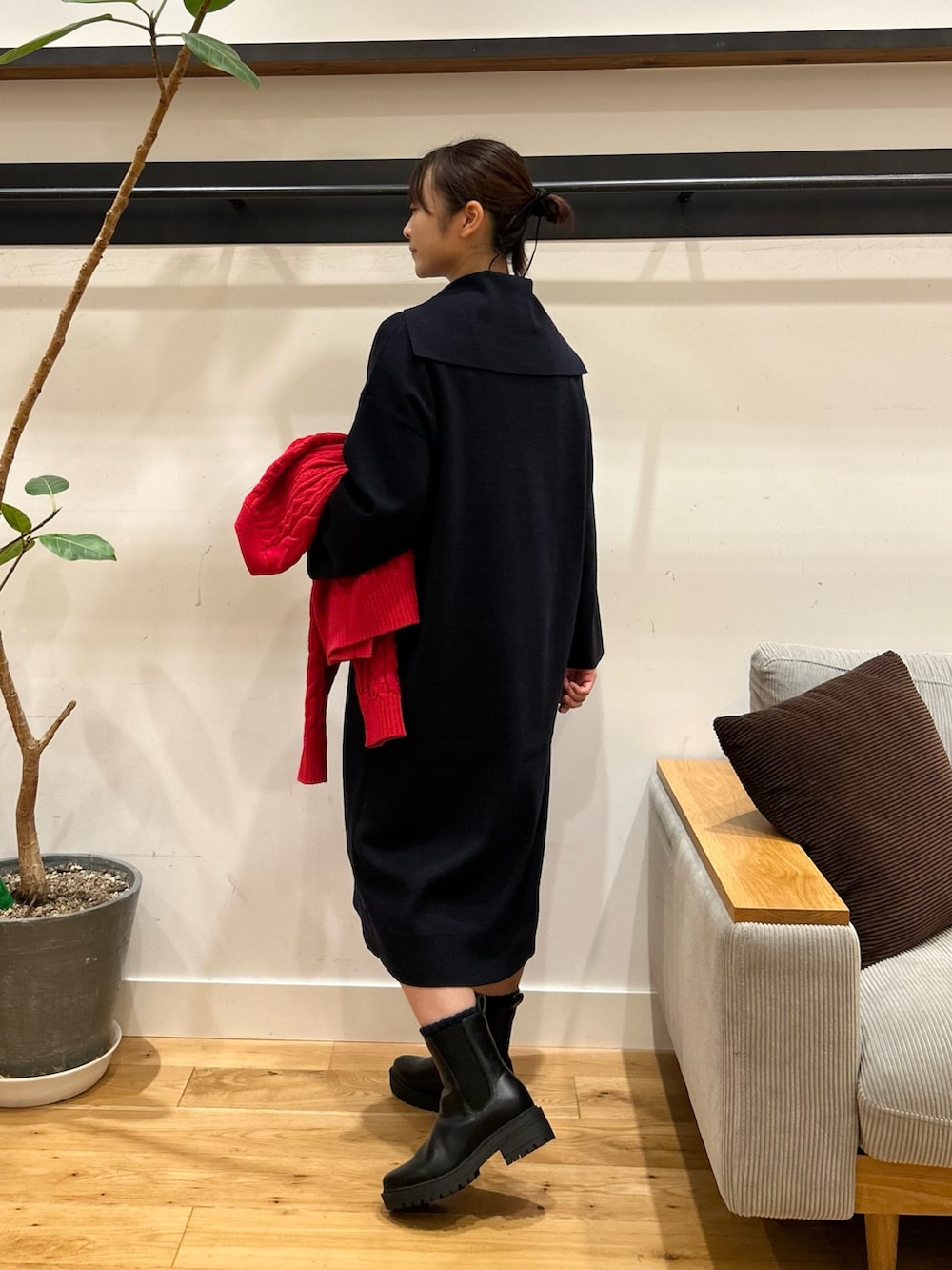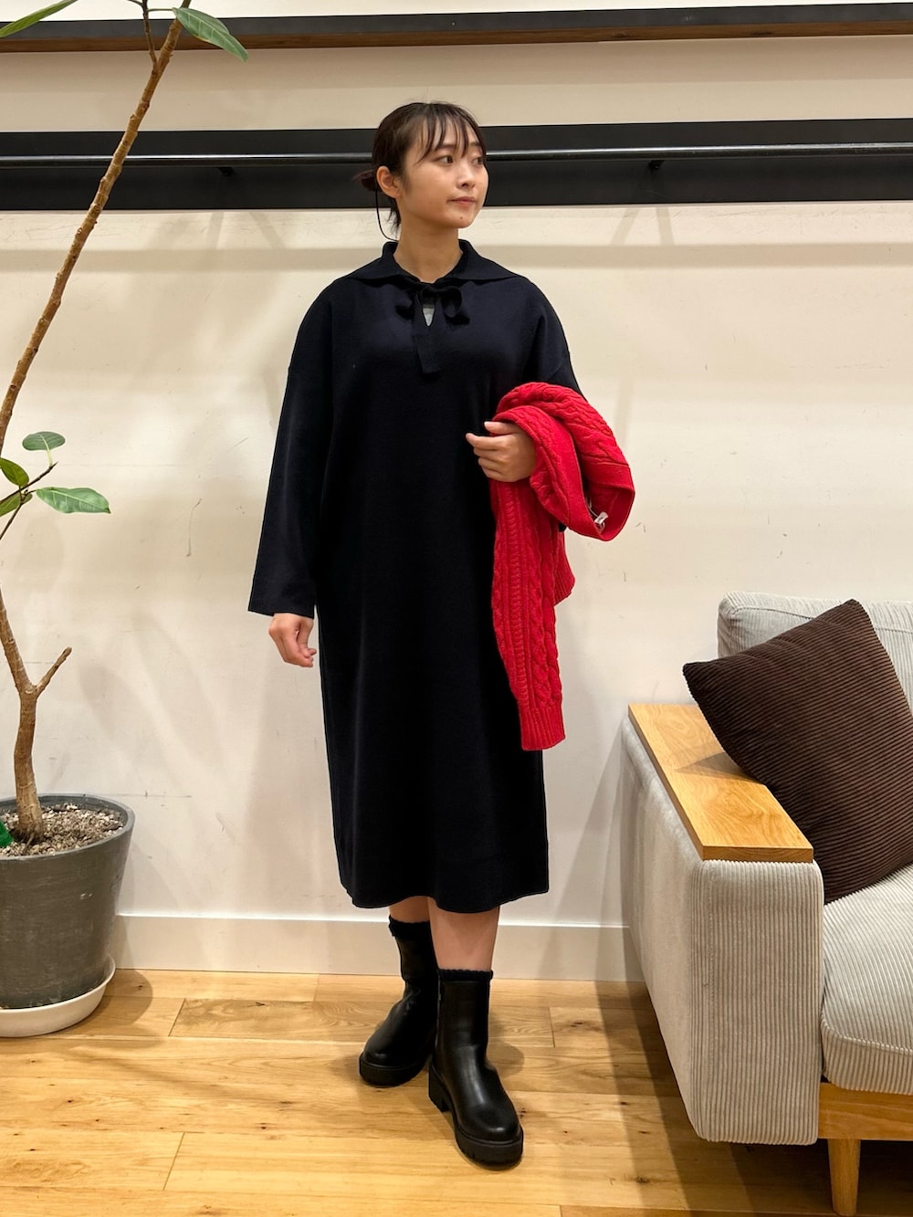 FORK&SPOONのセーラーカラーのワンピースは、ニットワンピなのでゆったり着心地がいいです。丈みじかめなので、パンツやカラータイツ合わせもおすすめです。