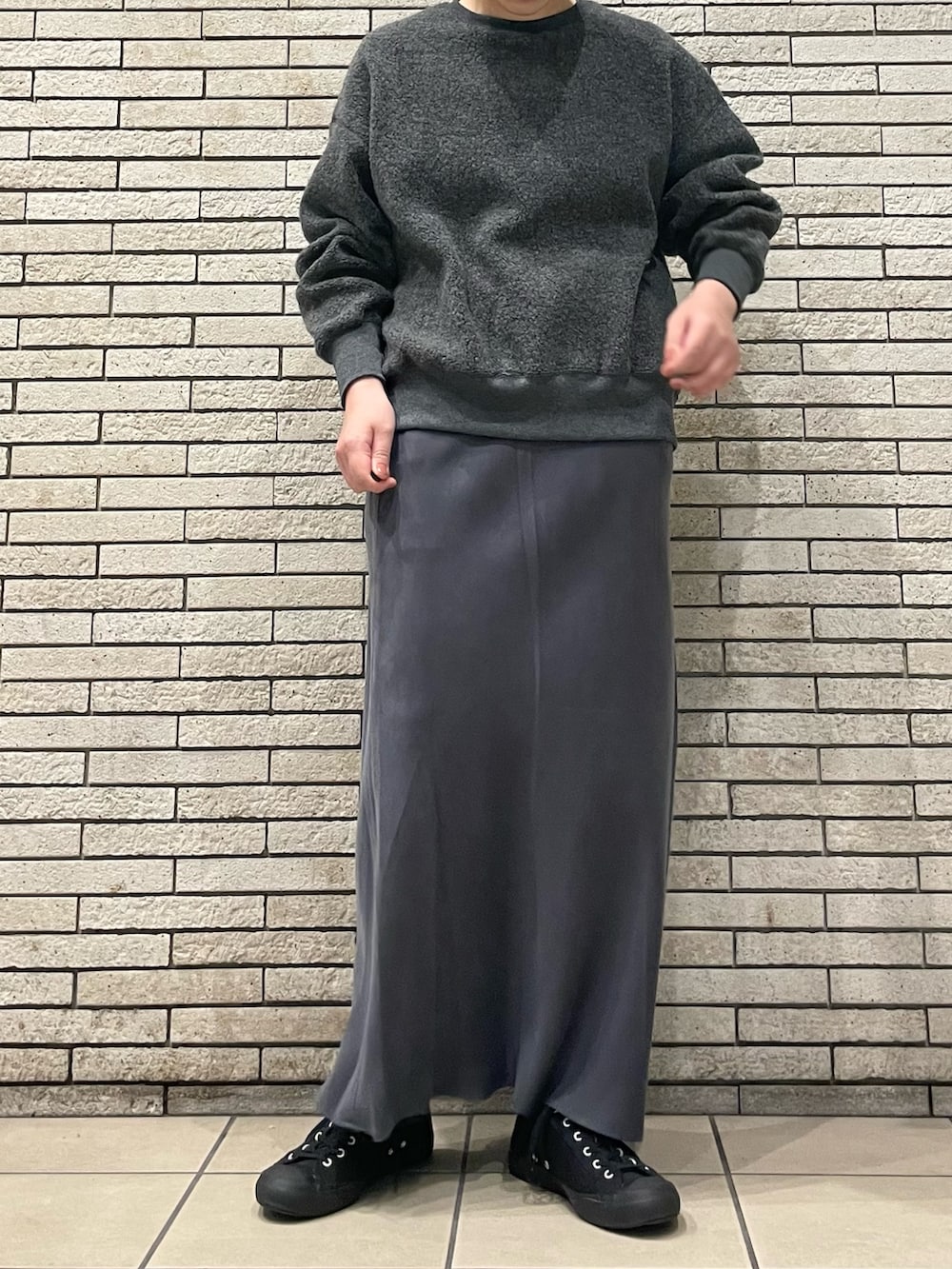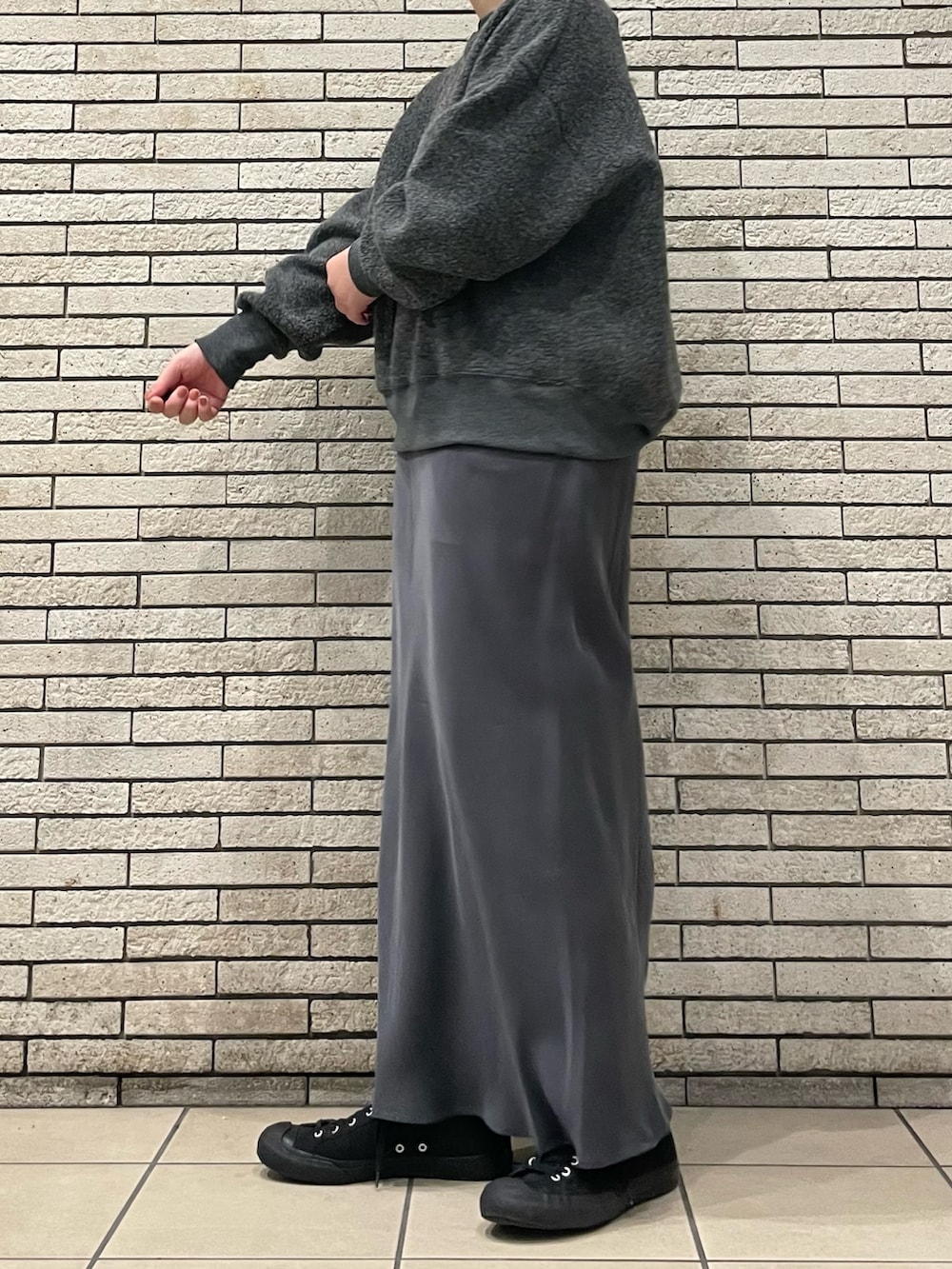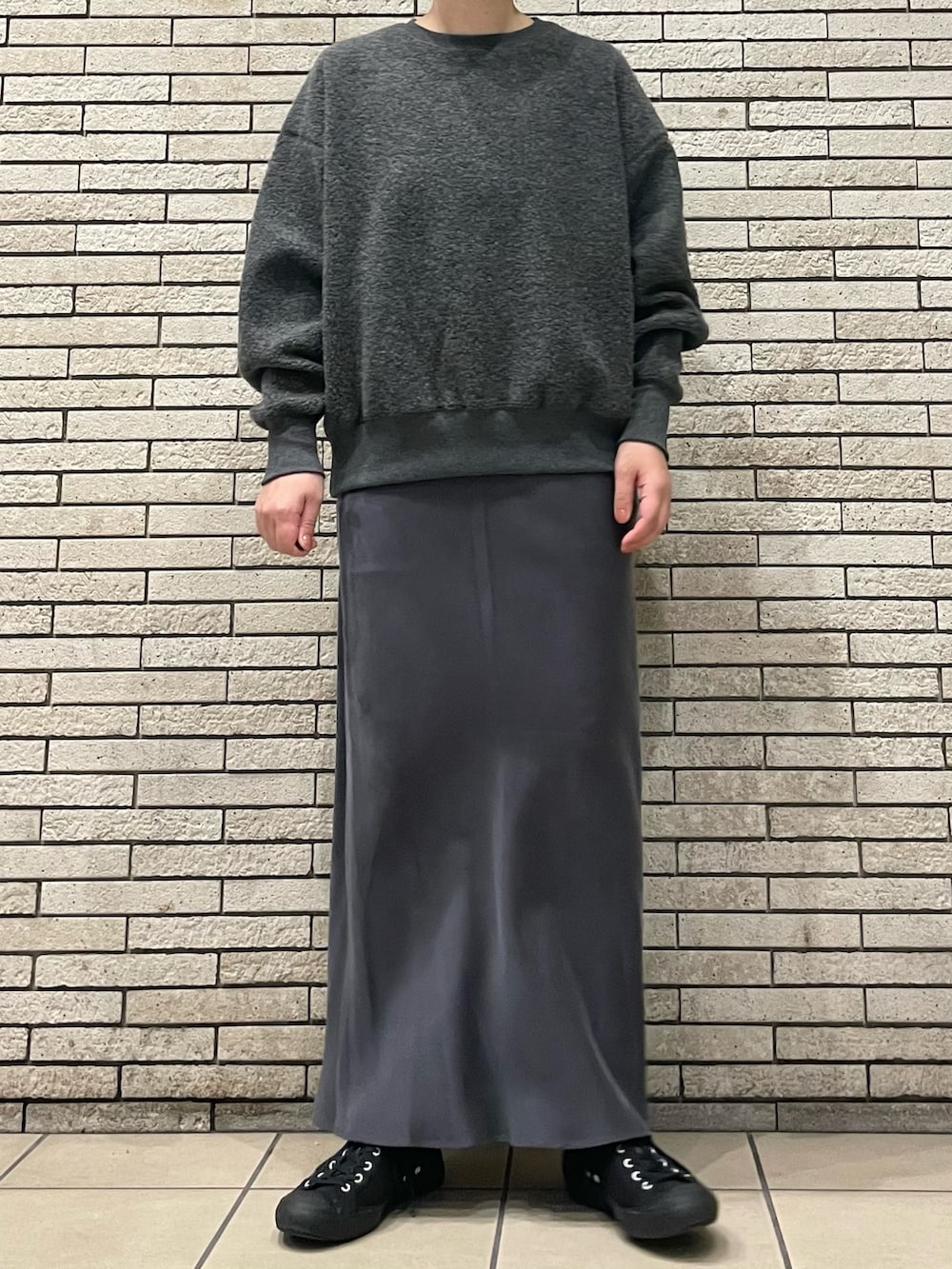ニットやスウェットなど、ボリュームのあるトップスと好相性です◎