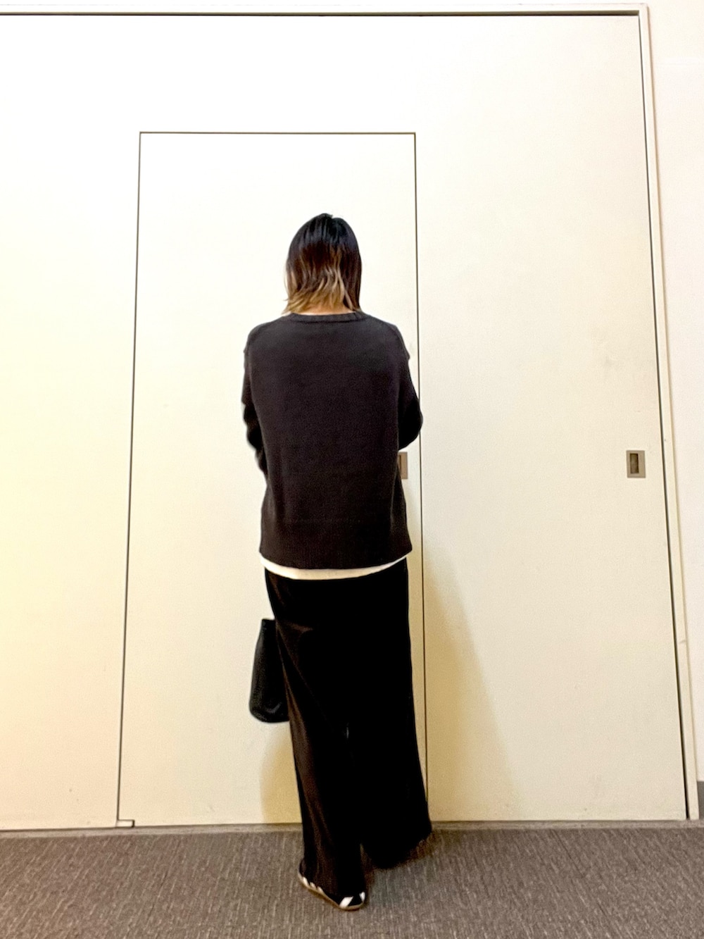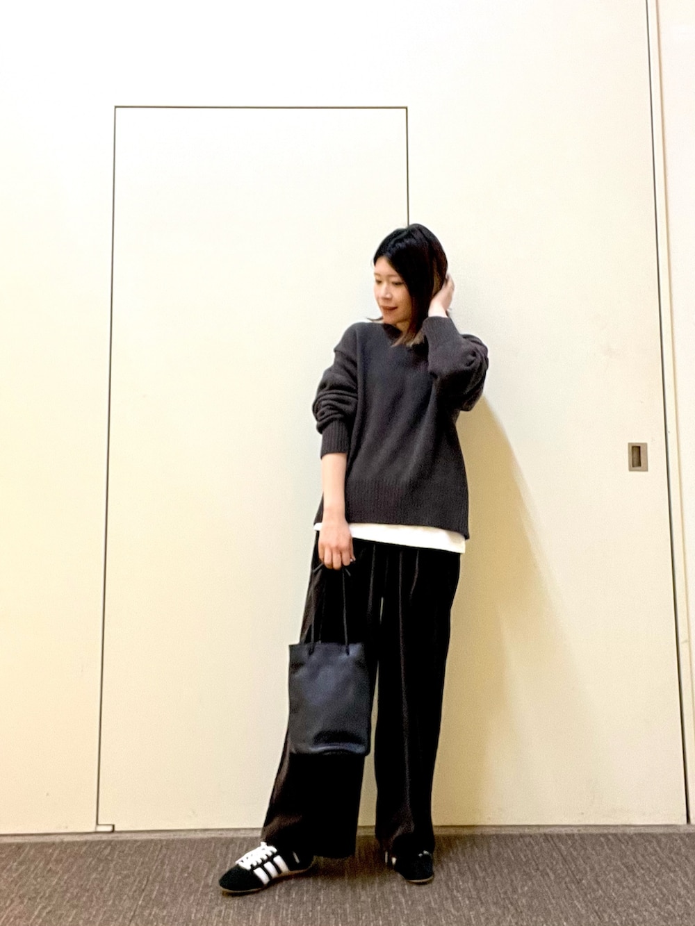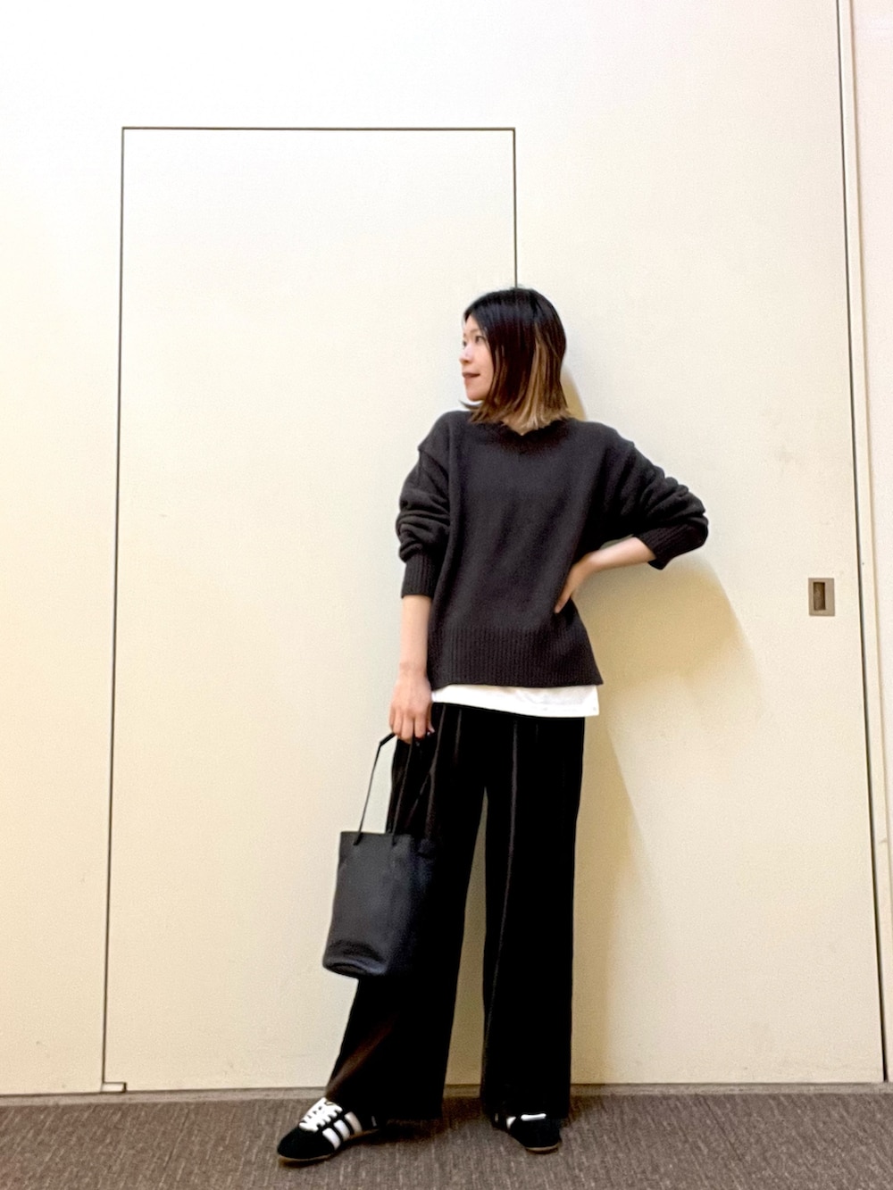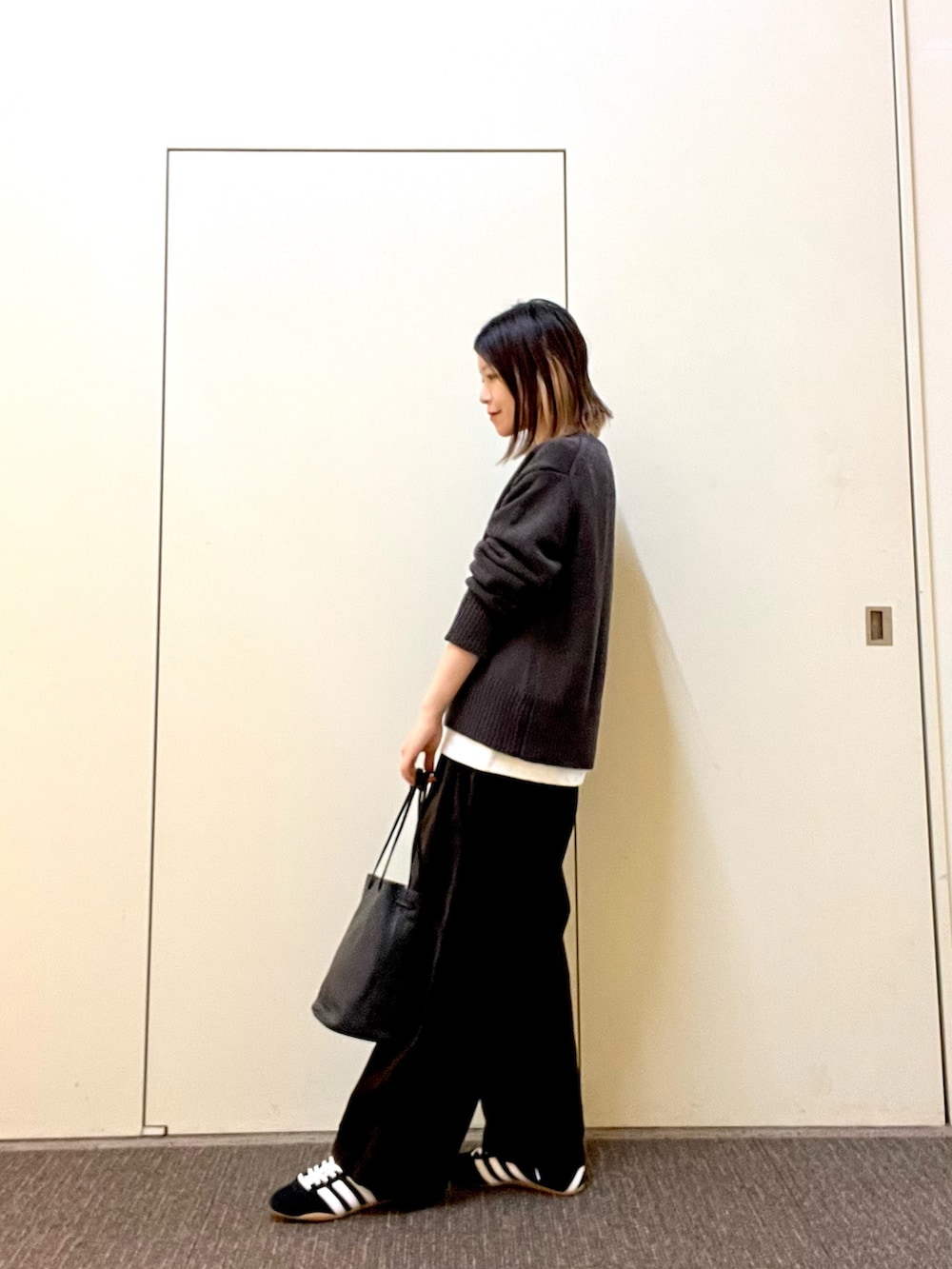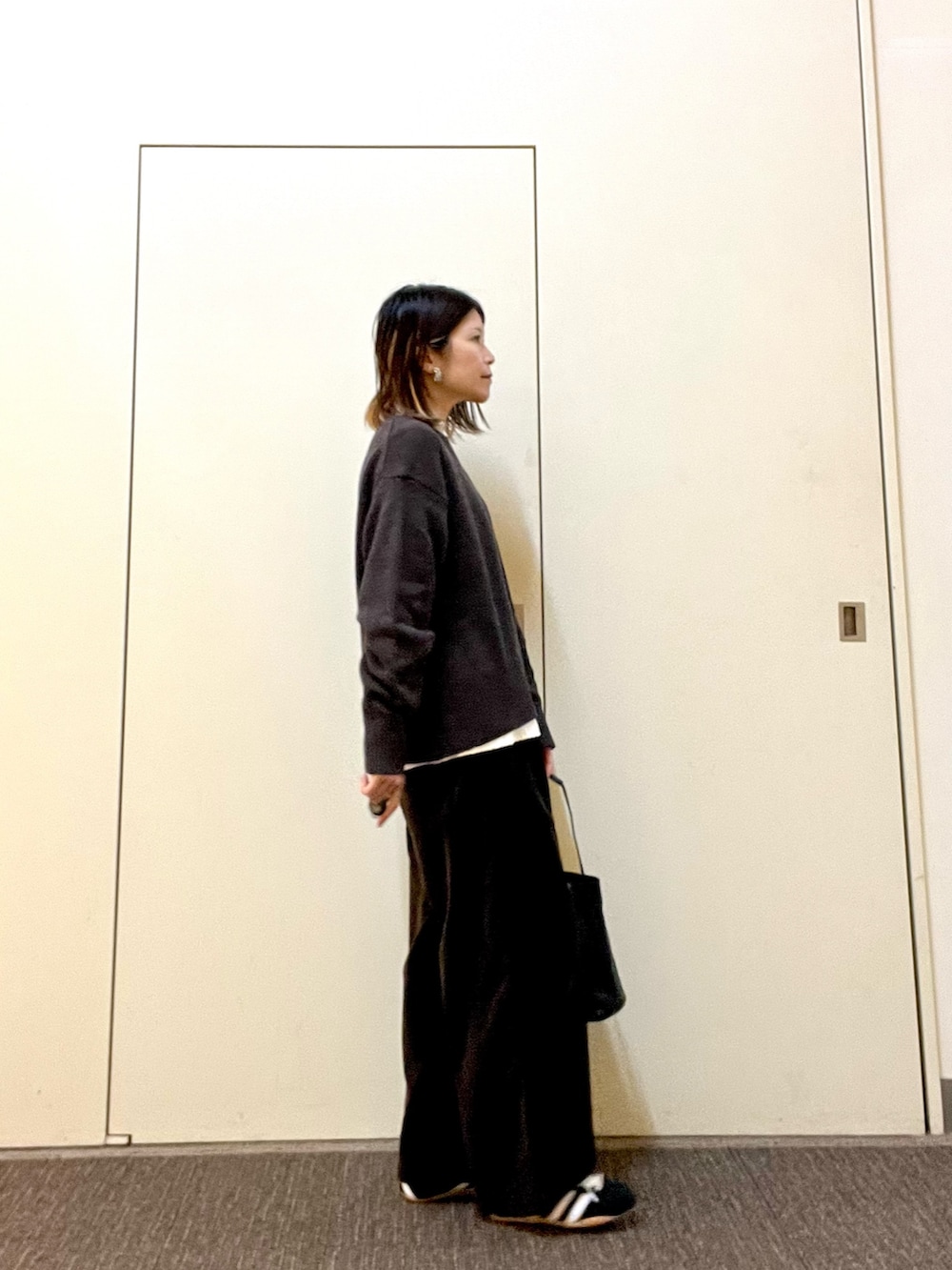 FORK&SPOONのVネックニットは柔らかい肌触りでゆったりとしたシルエットなので着心地が良いです!浅めのVネックなので1枚でも着やすいです🧶