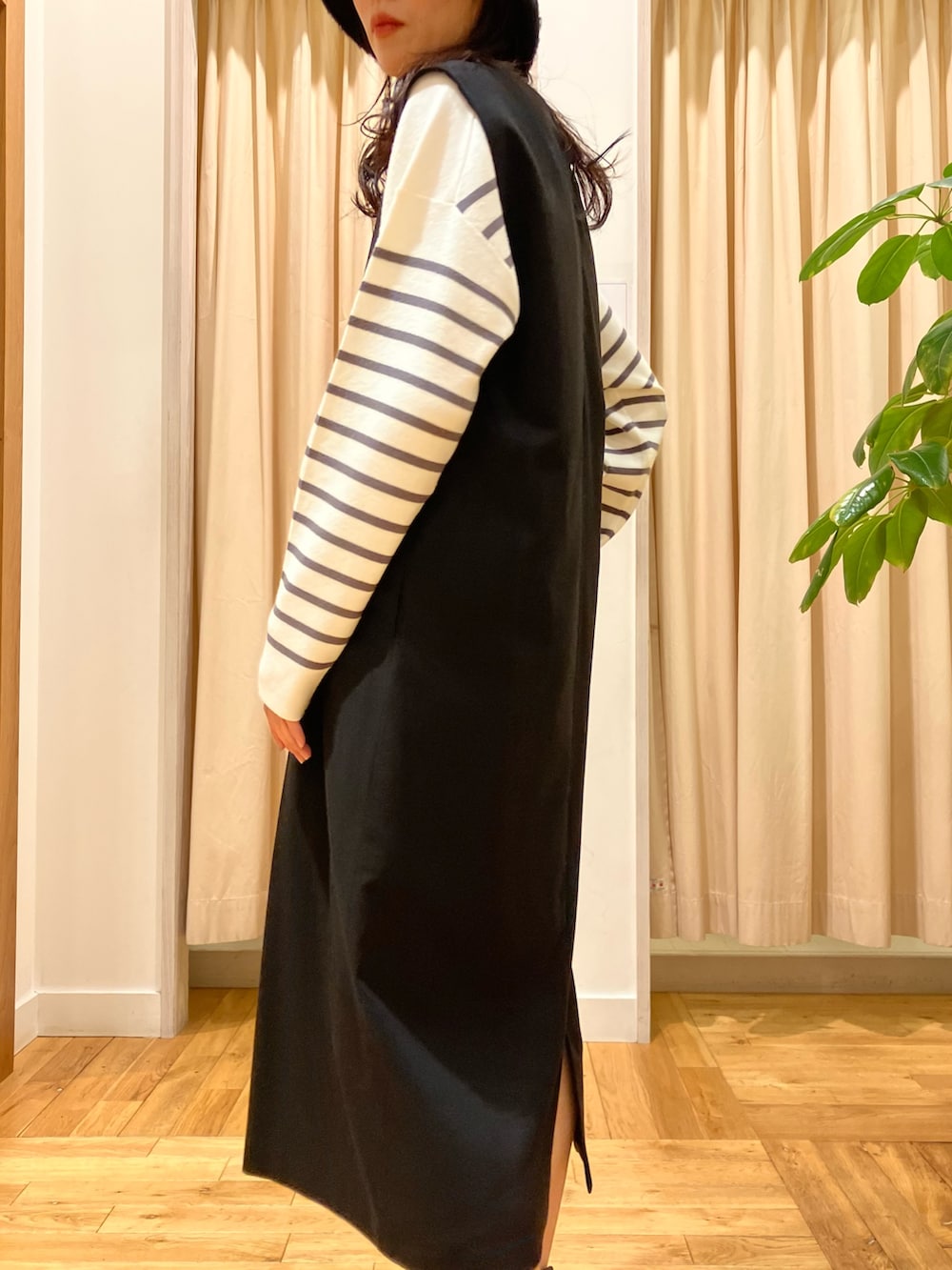 中に着ているボーダーニットはふわふわとろとろした素材で、着心地が抜群です!
