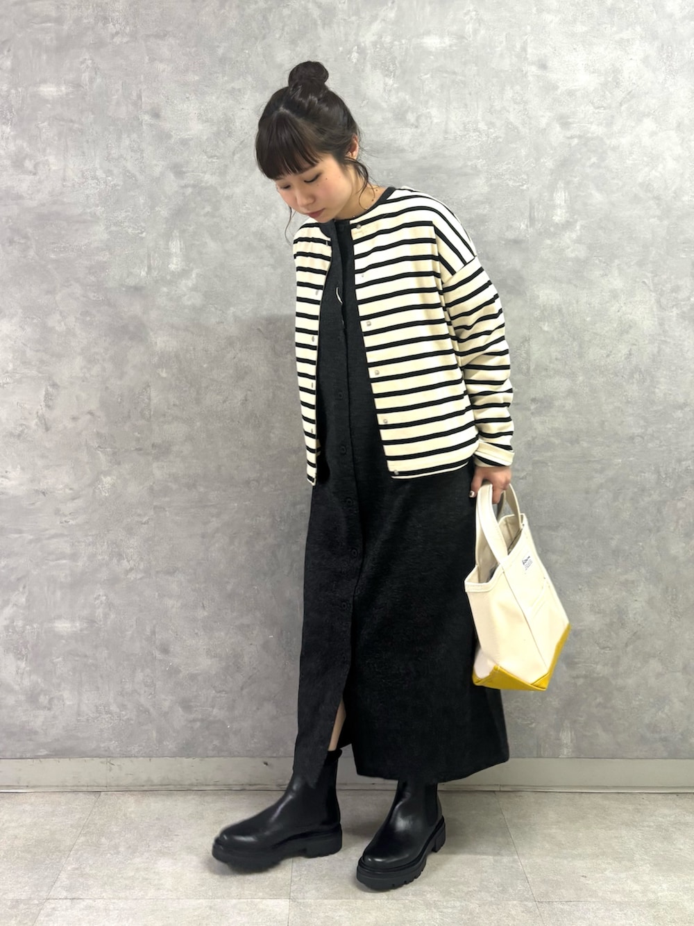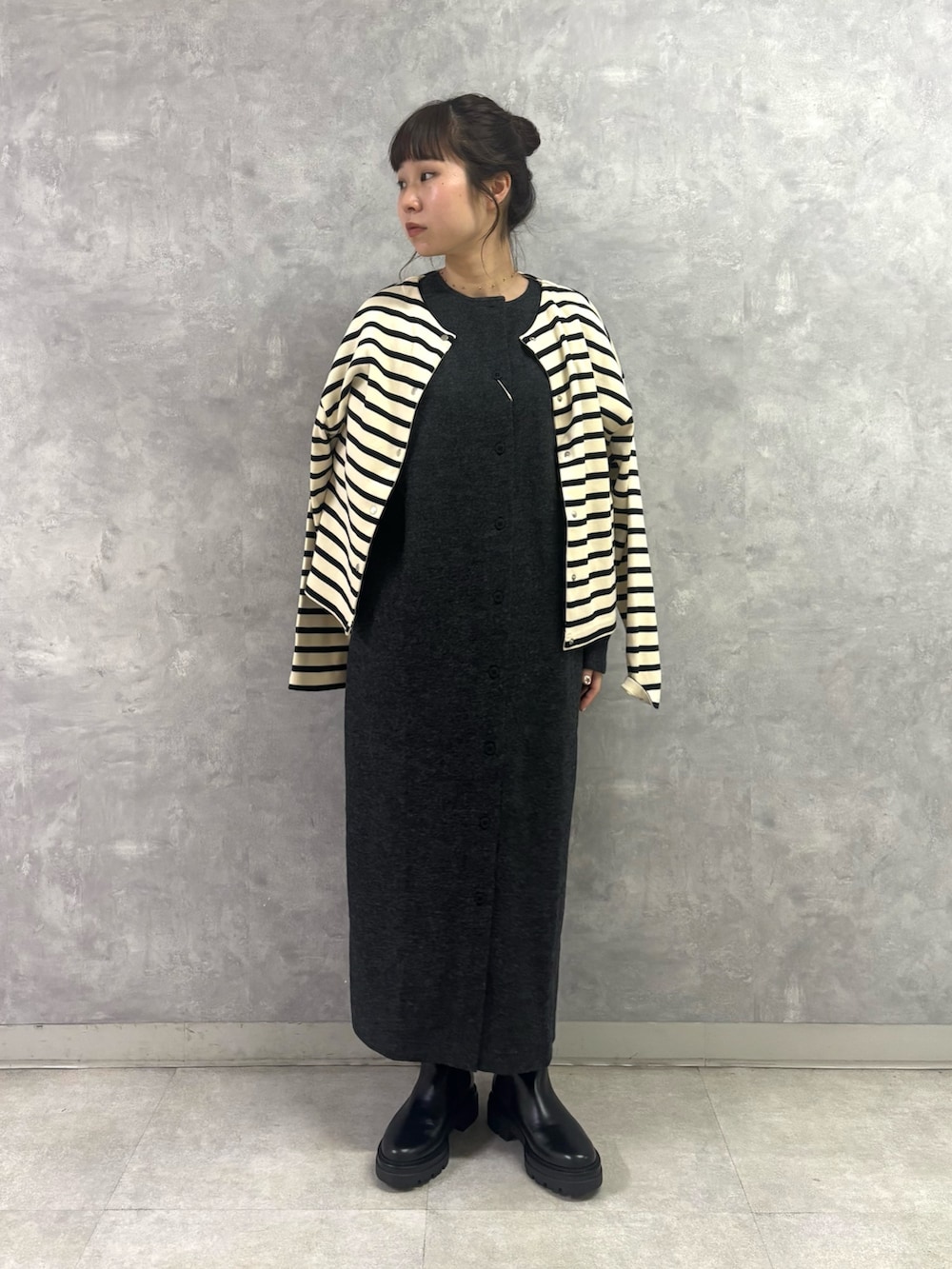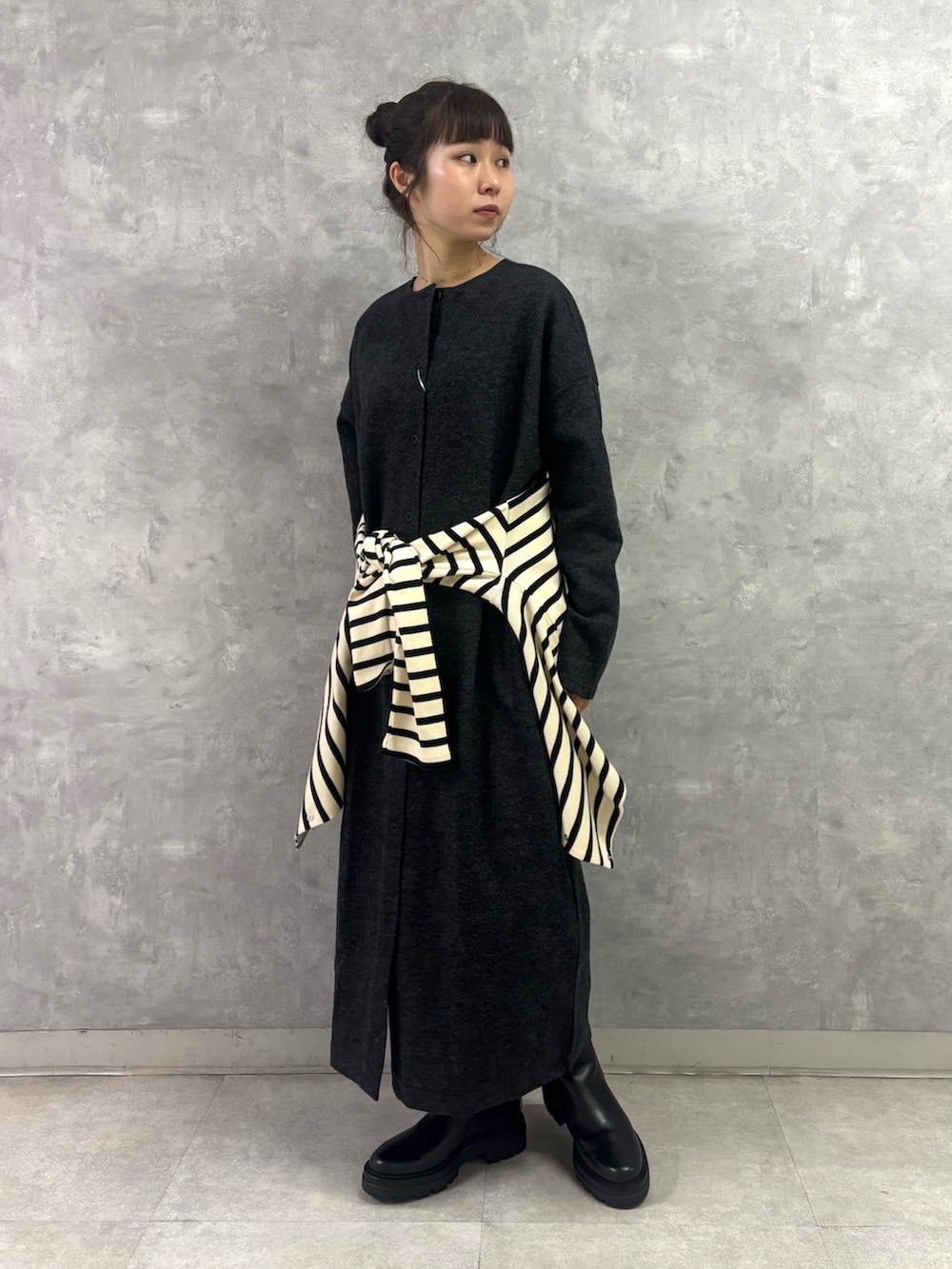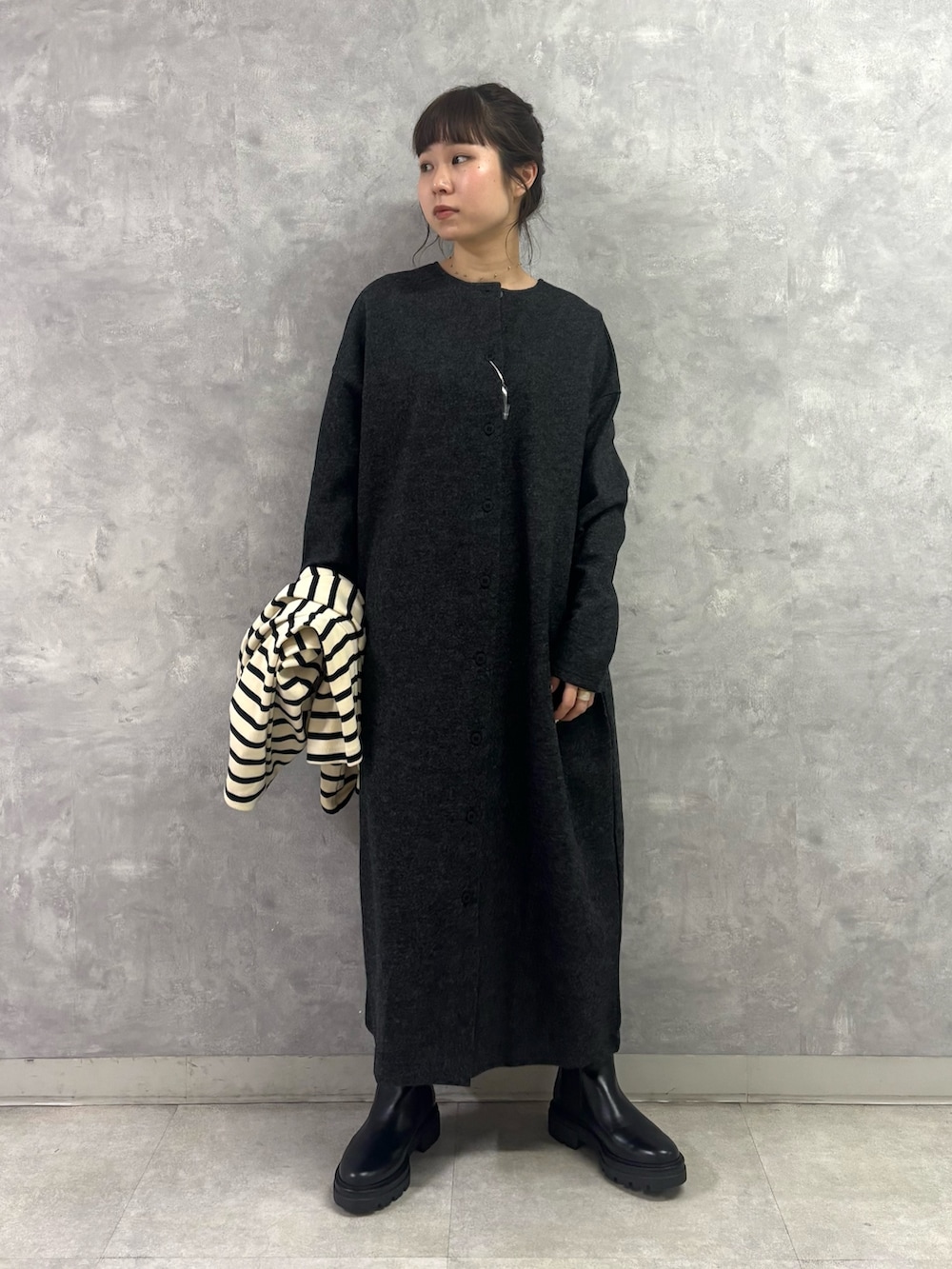 前開きで軽い羽織物として着るも良し、レギンスやリブタイツなどを仕込んで一枚で冬らしい着こなしにするも良し。