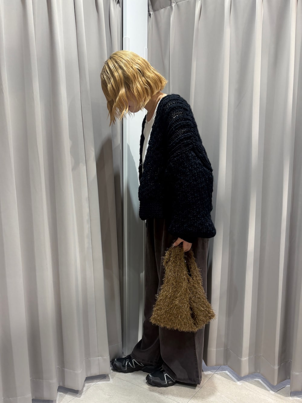 袖がたっぷりとあるデザインのニットカーディガンはコーディネートのアクセントにもなります!