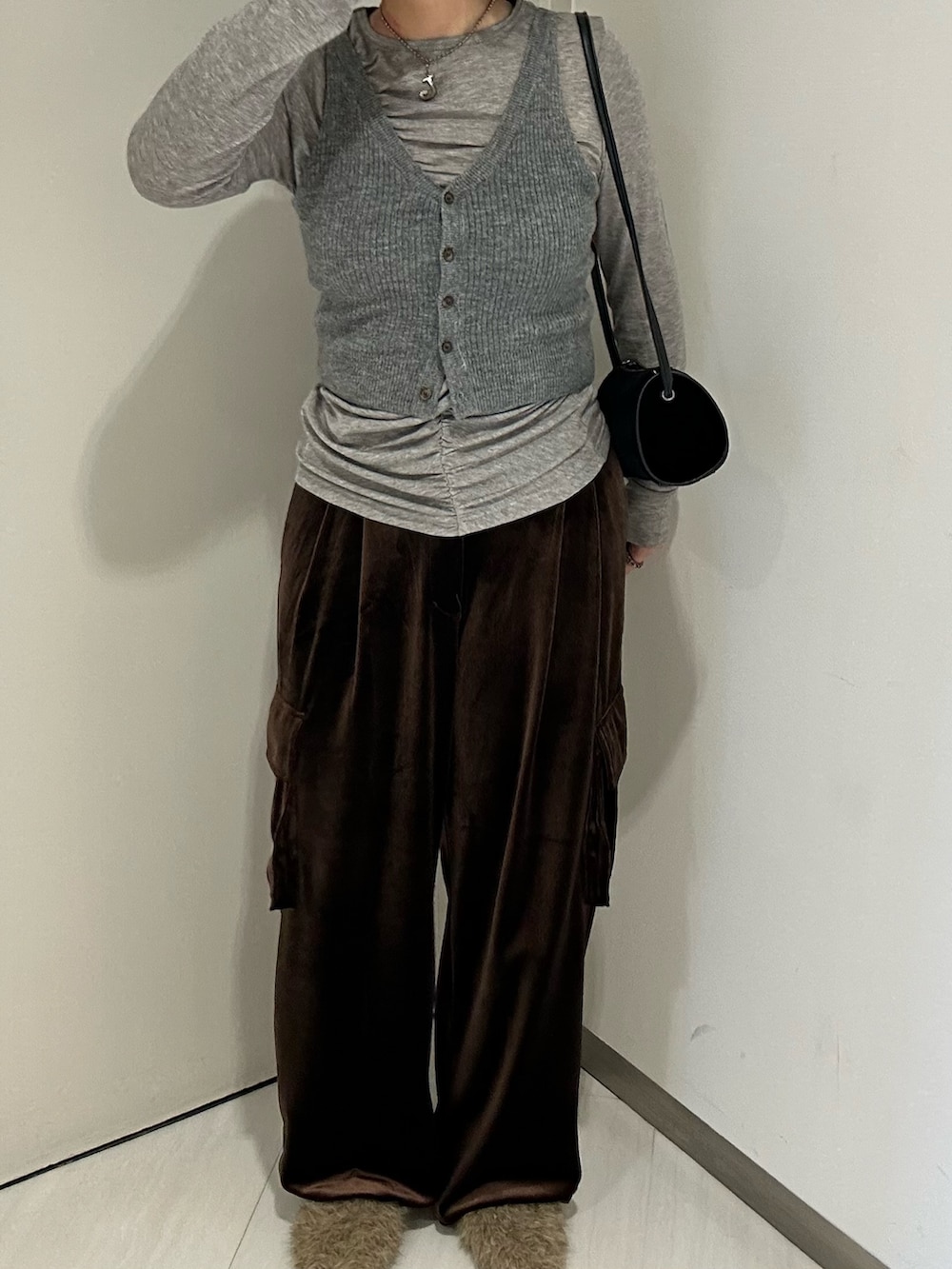 シンプルな大人コーデだけど、足元がモコモコで可愛いです♪♪