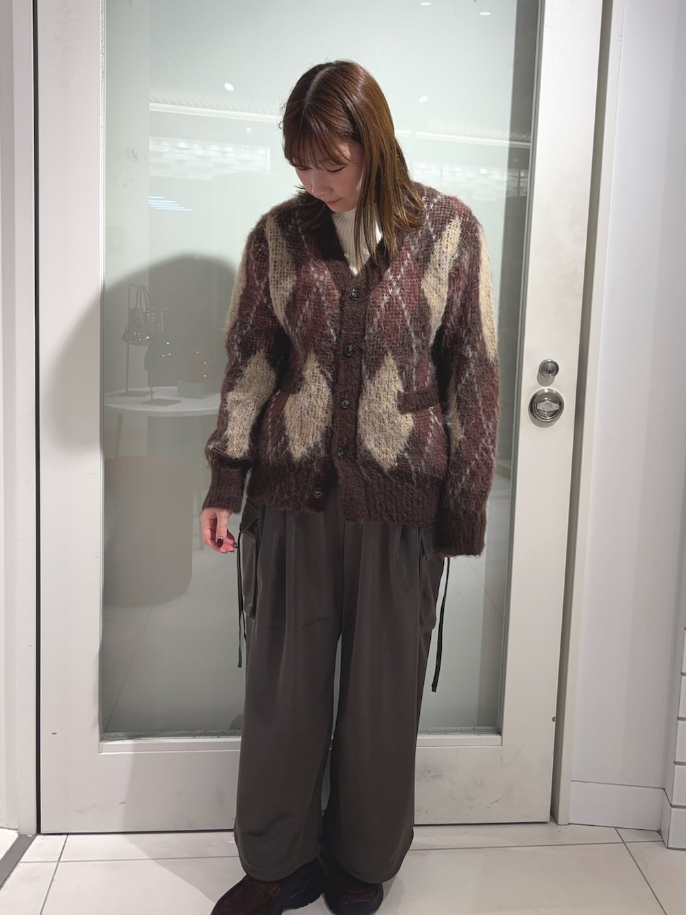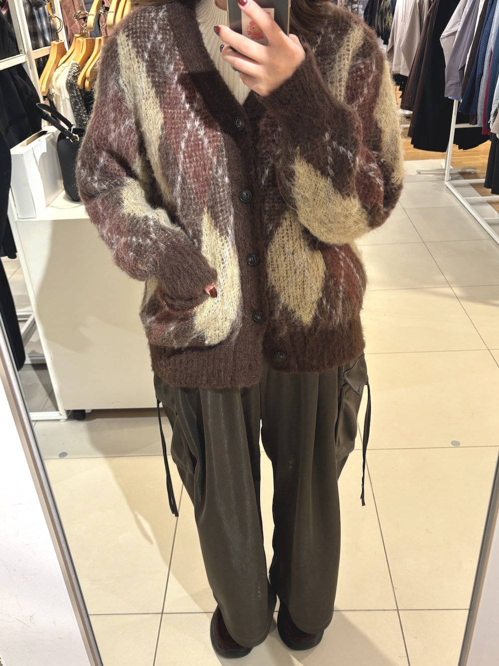 ユニセックスで着れるアーガイルカーディガン!Mサイズでゆったり着れるサイズ感でした!ふわふわでとても暖かいです🤍