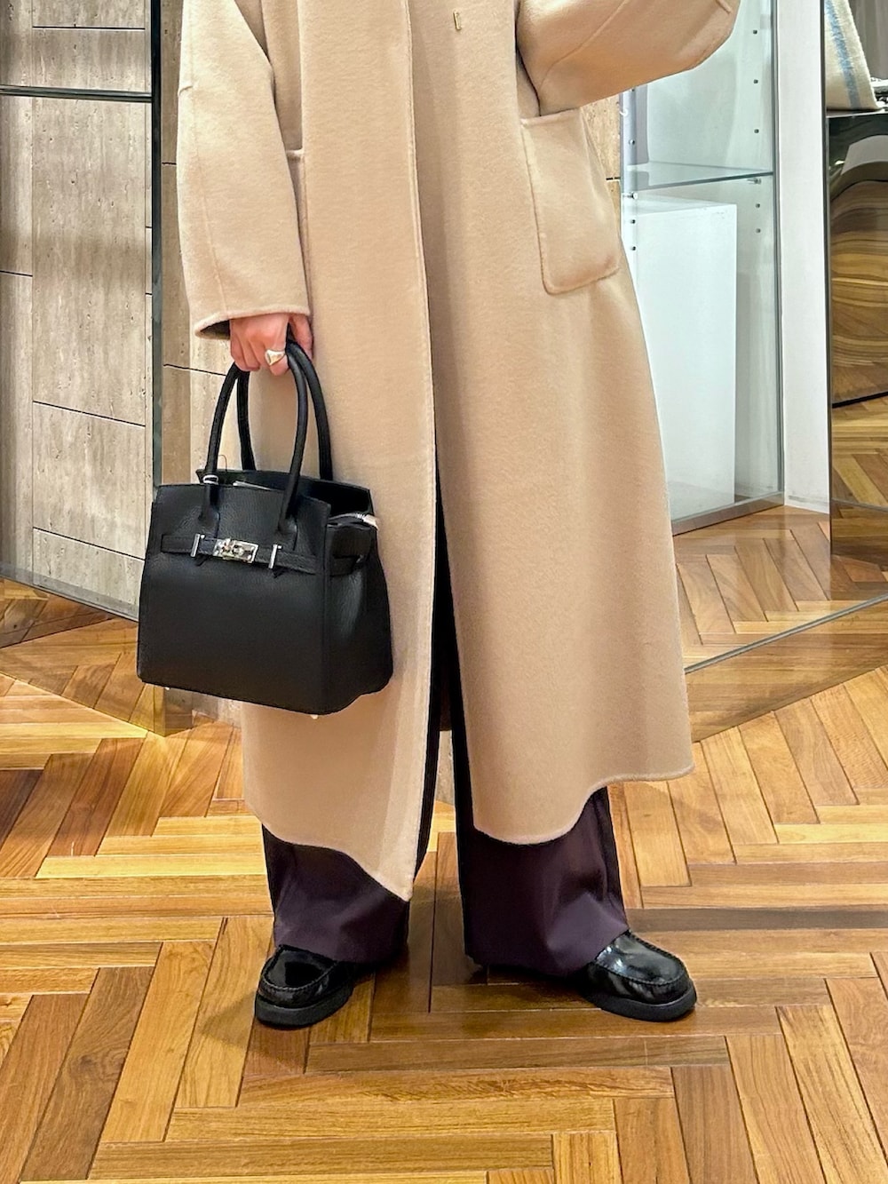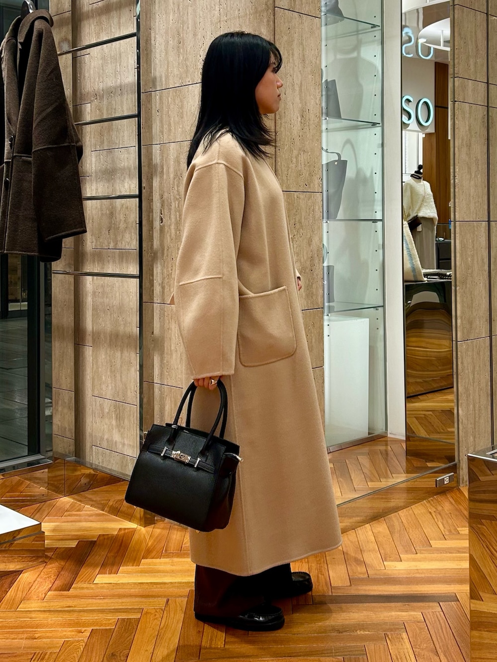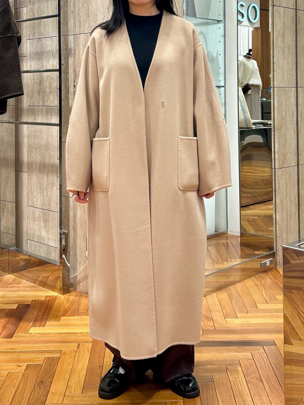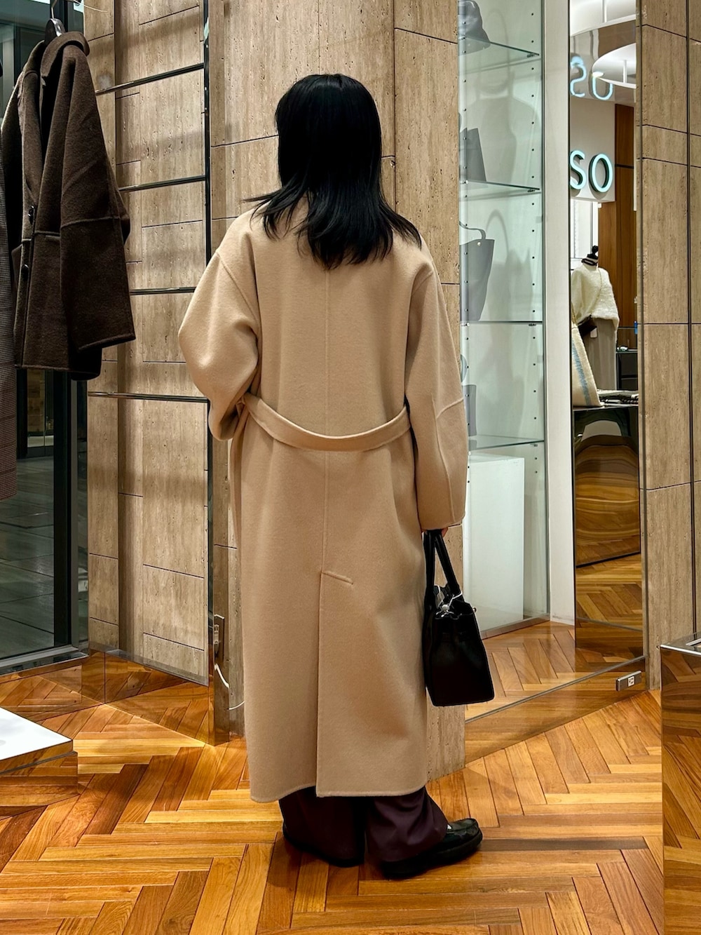 ベルトを絞めずにゆったり羽織るのが今の気分…*