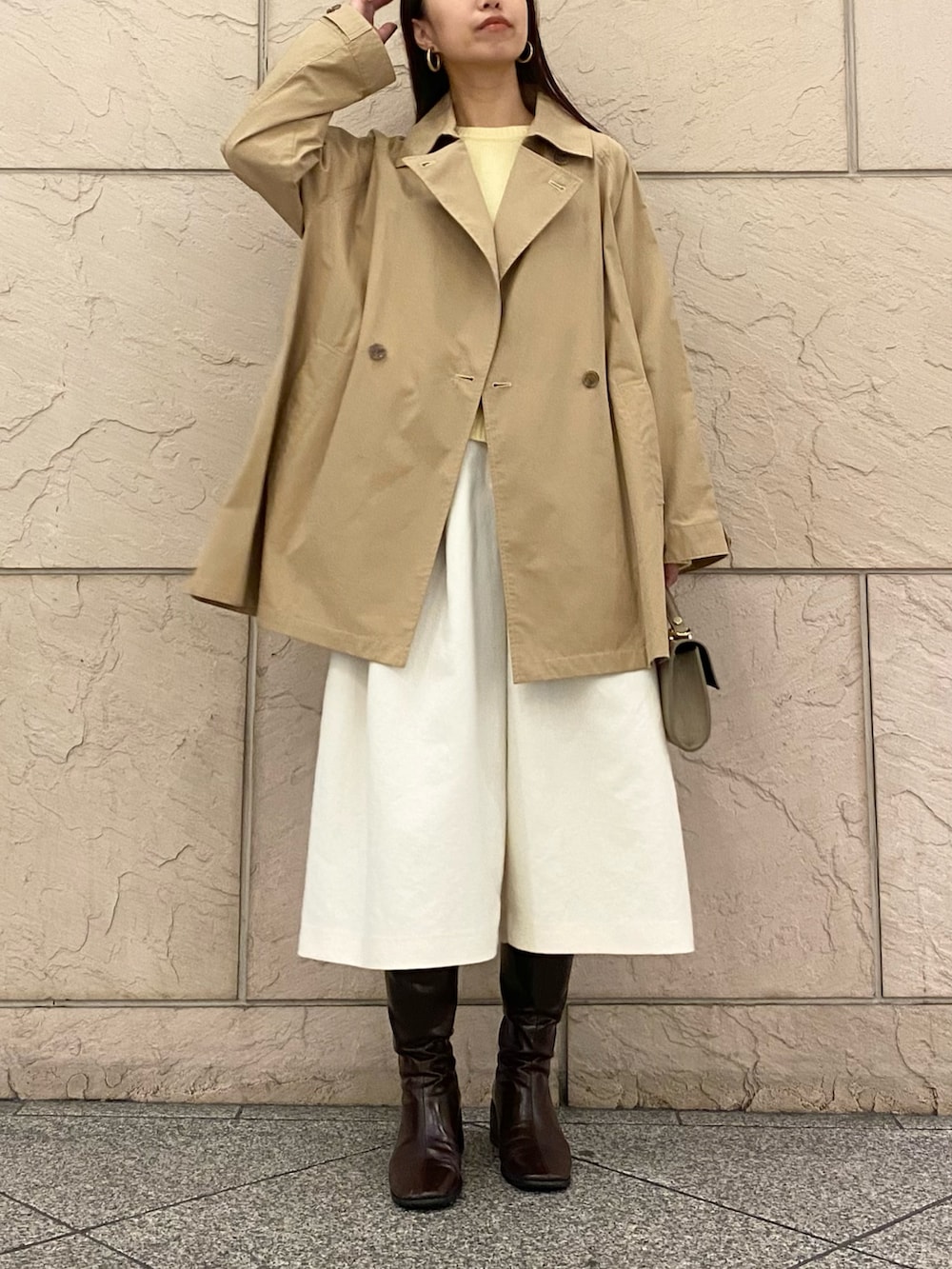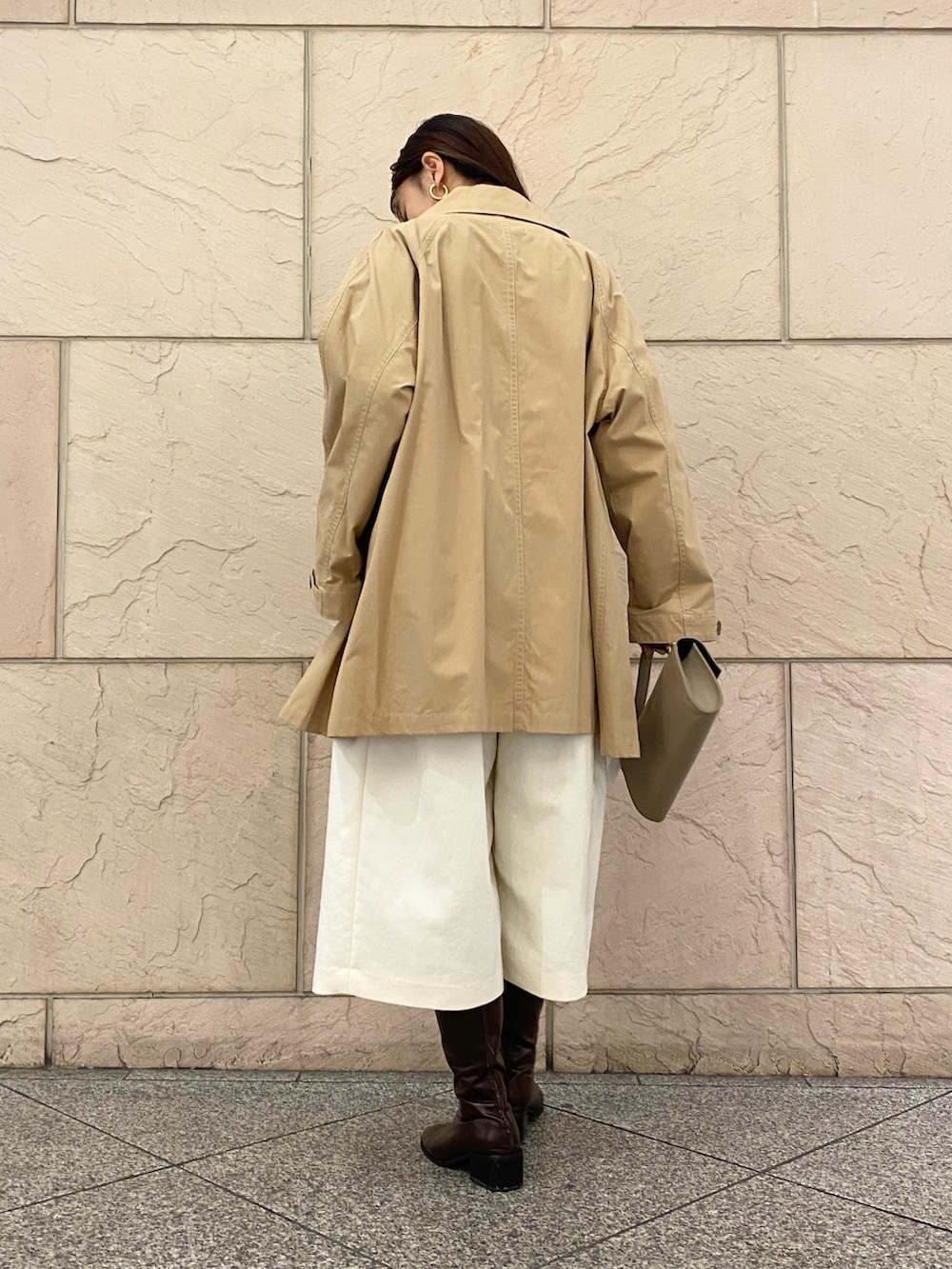 ショートトレンチのようなシルエットできちんと見えするのがオンオフ兼用で使えて◎