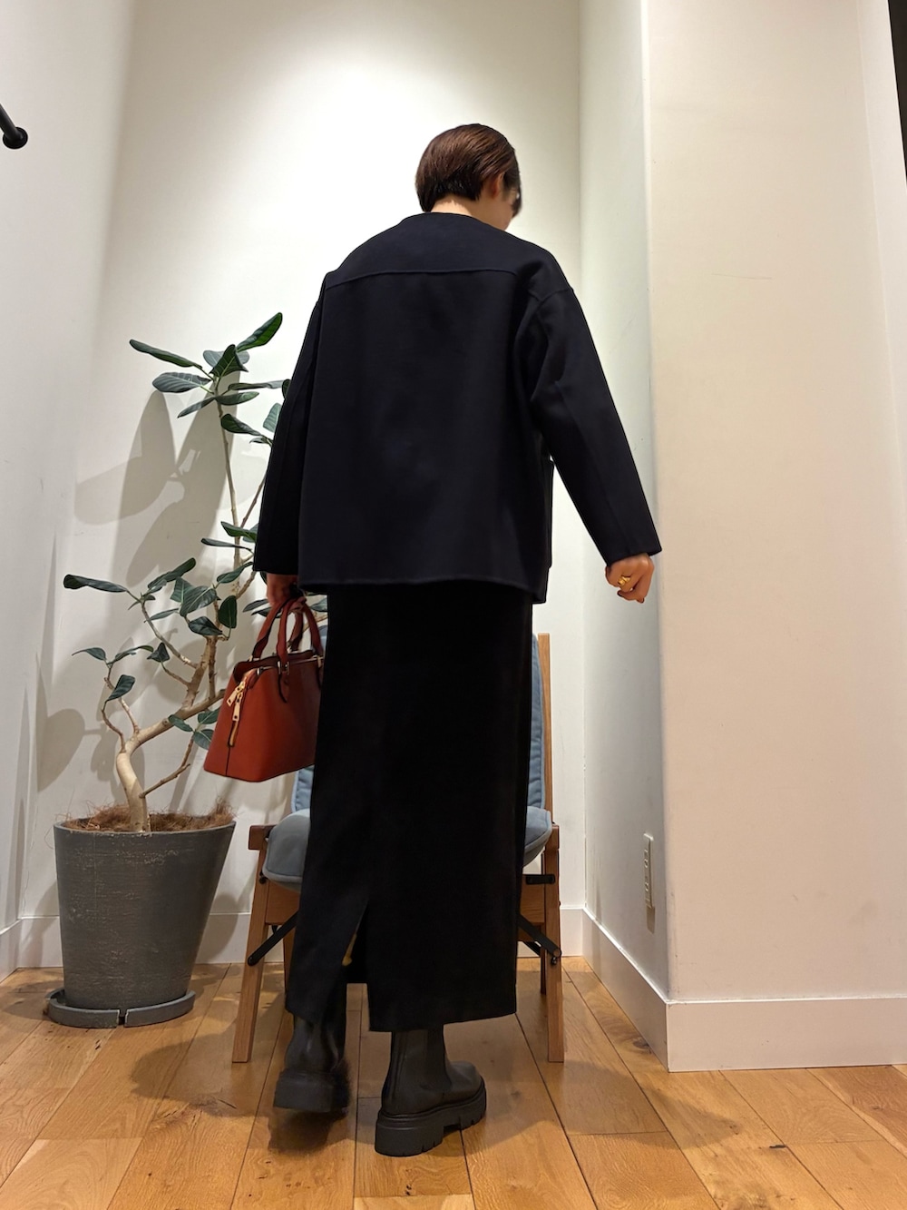Iラインのベロア生地のスカートと合わせてみました!!シルエットが最強過ぎます!