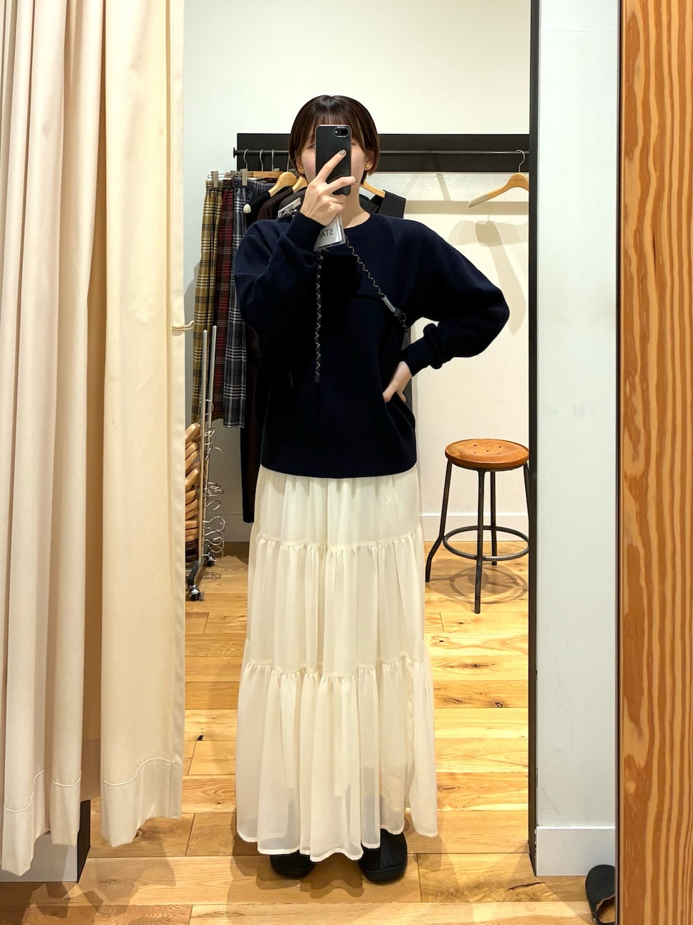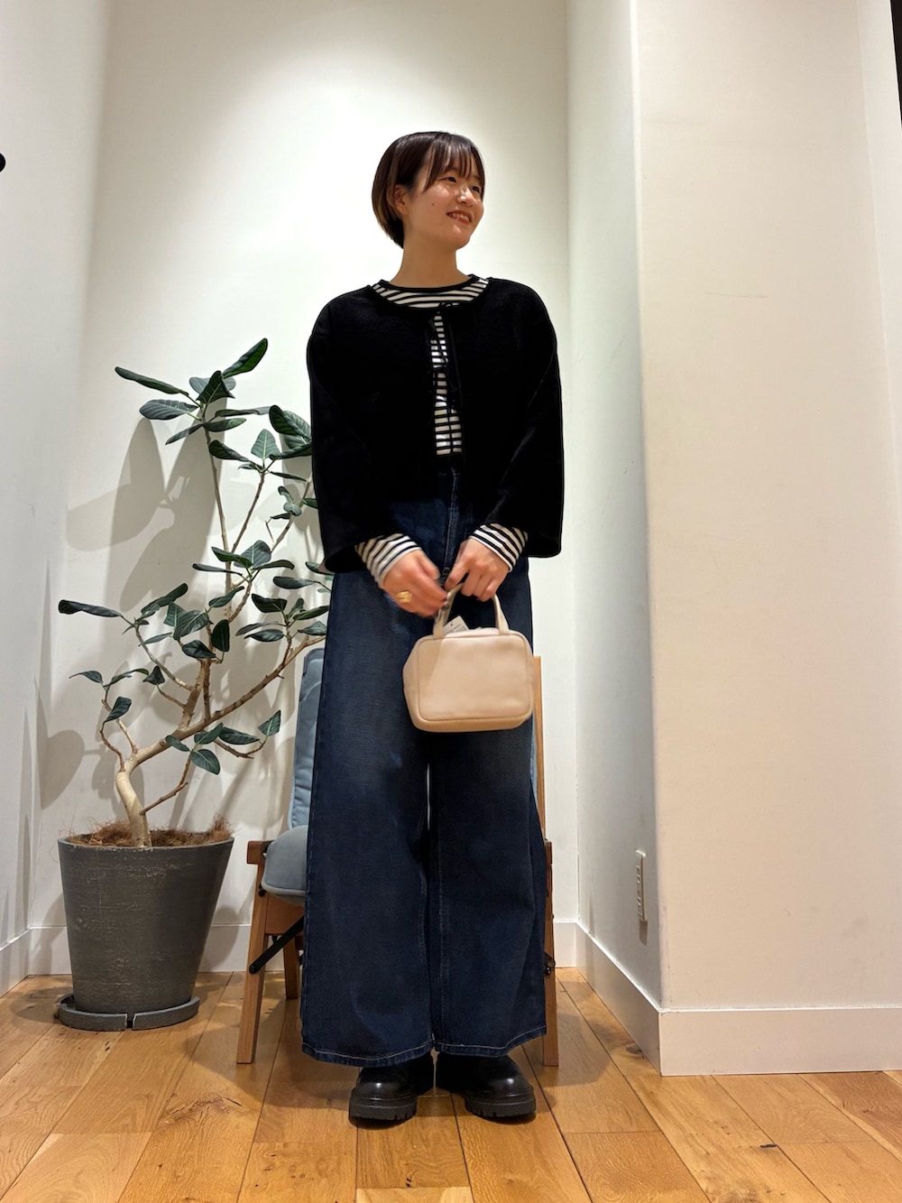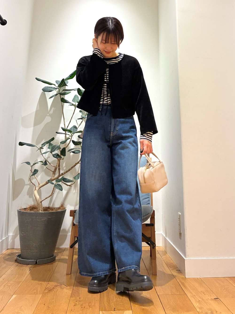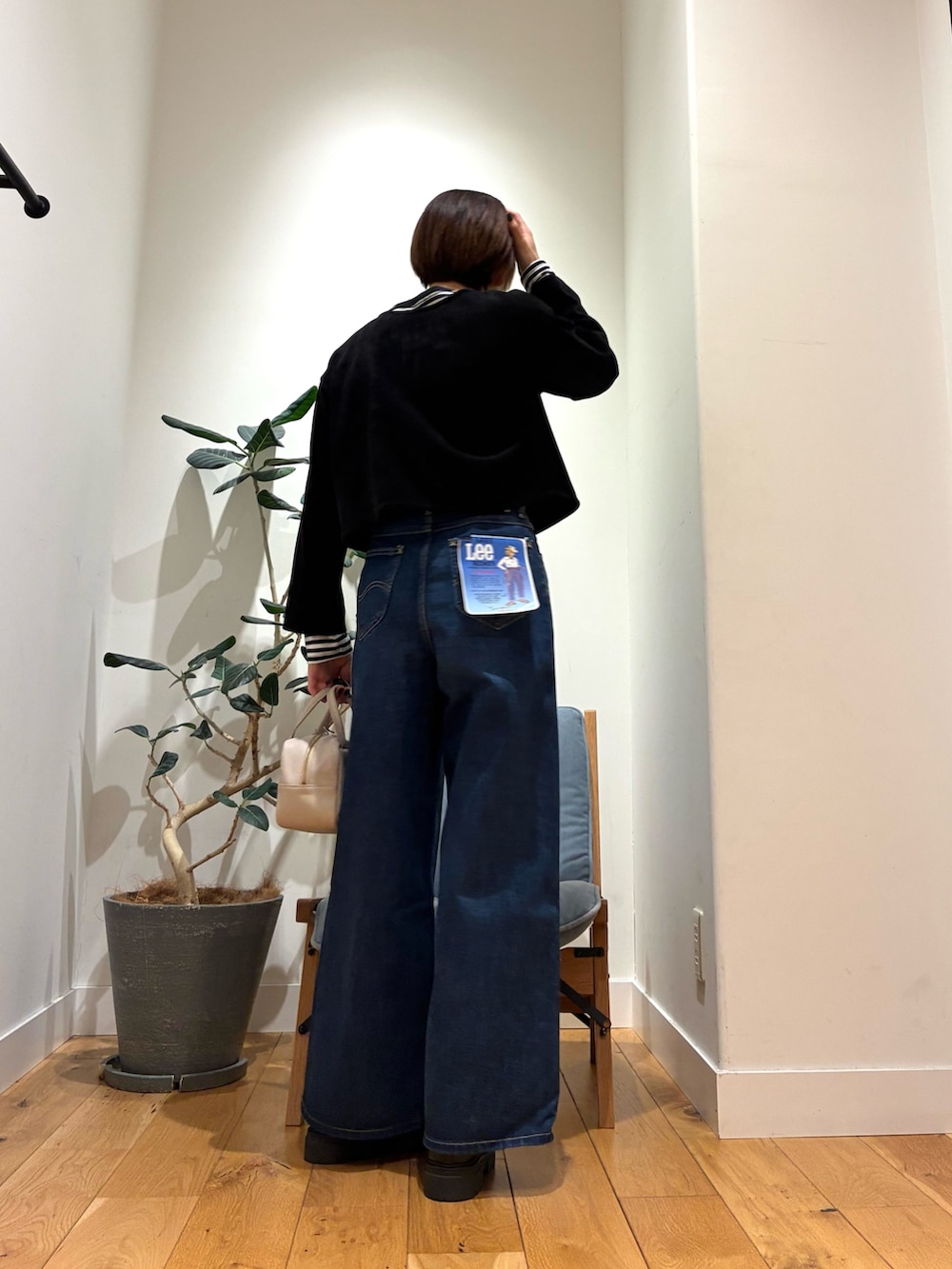 この丈感のカーディガンにピッタリなのは、URのLeeのバギーパンツ!!