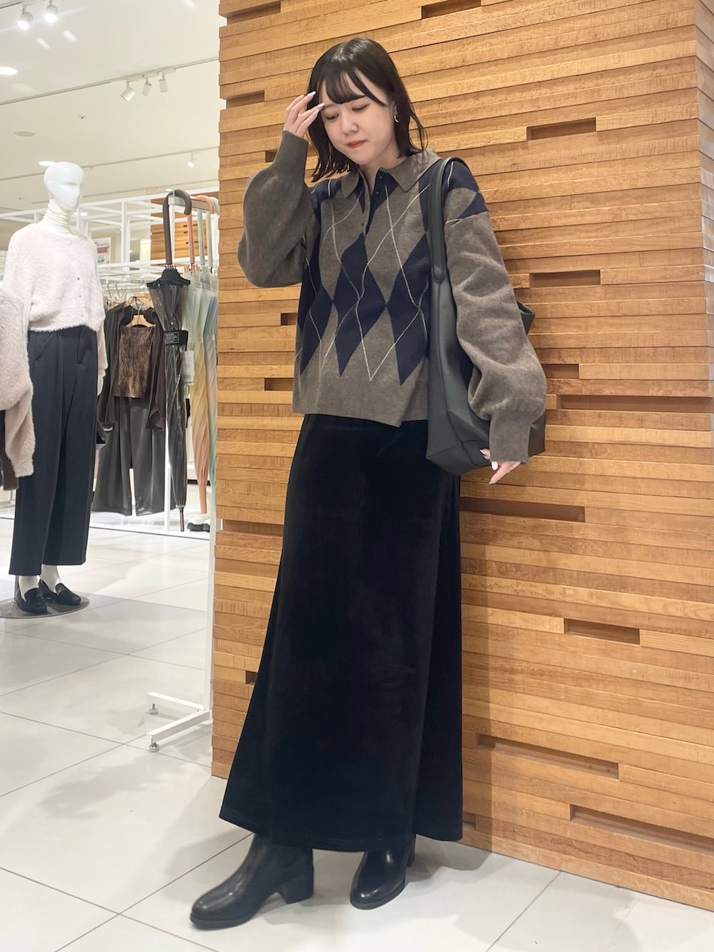アーガイル柄ニットは一枚で決まる万能アイテムで首元は程よく空いていて抜け感を演出してくれます𓂂𓏸