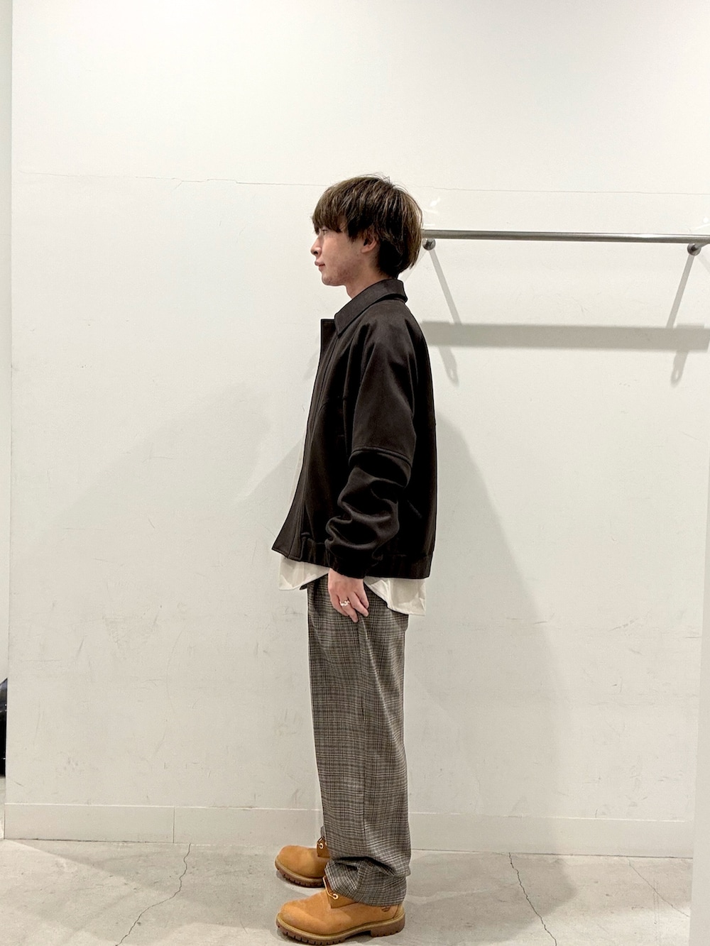 秋らしいチェック柄スラックスを主役に、他のアイテムはシンプルな色のものでまとめてみました!