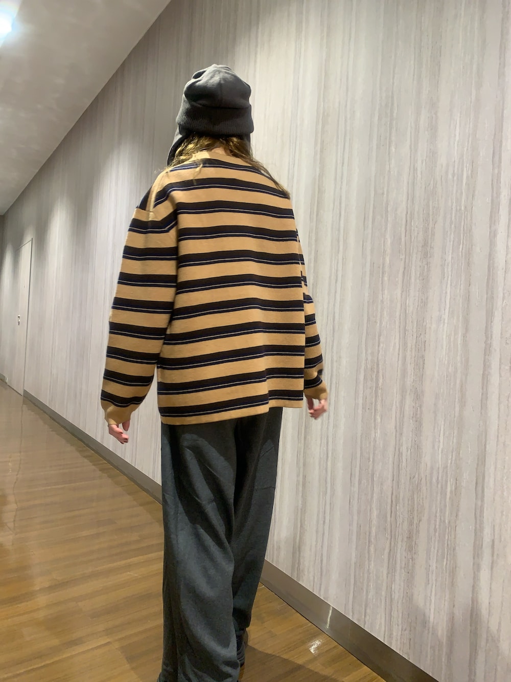 トップスの着丈は長めですが、出したまま着てルーズになりすぎないのでそのまま着たい1着です。ボーダーも子どもっぽくならなず、落ち着いたカラーと柔らかい着心地で大人っぽく着られます。