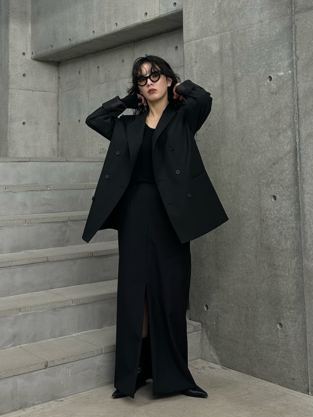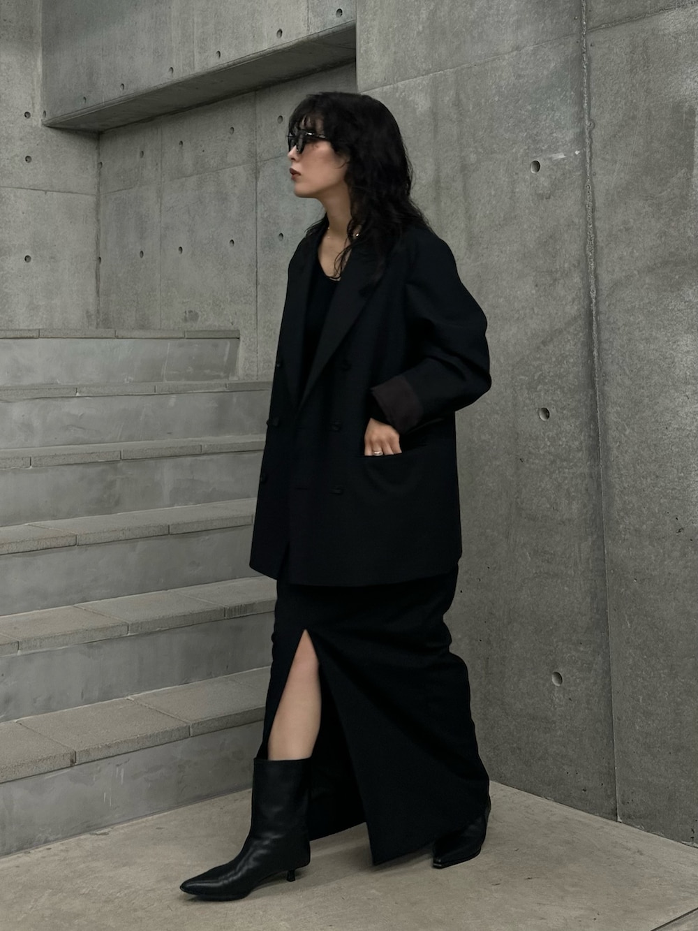 スカートはしっかりマキシ丈のデザインで、36のサイズで裸足だと裾が擦るけど、スニーカーやブーツなら大丈夫な丈感でした。
