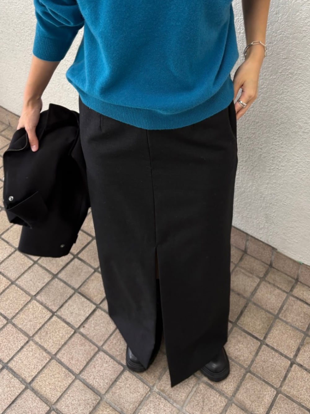 裾にかけてストンと落ちる縦長シルエットが、スタイルアップ効果を発揮。深めに入ったバックスリットが、歩くたびに軽やかな抜け感を演出し、ハンサムながらも女性らしい着こなしが叶います。