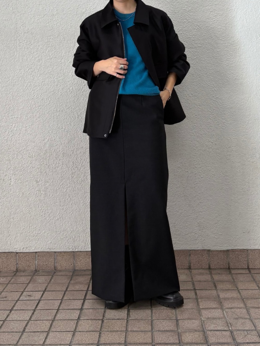 パンツやスカート、ワンピースなど、合わせるアイテムを選ばない着回し力の高さもポイントです。羽織りとしてはもちろん、フロントジップを閉めてトップスとしても活躍します。