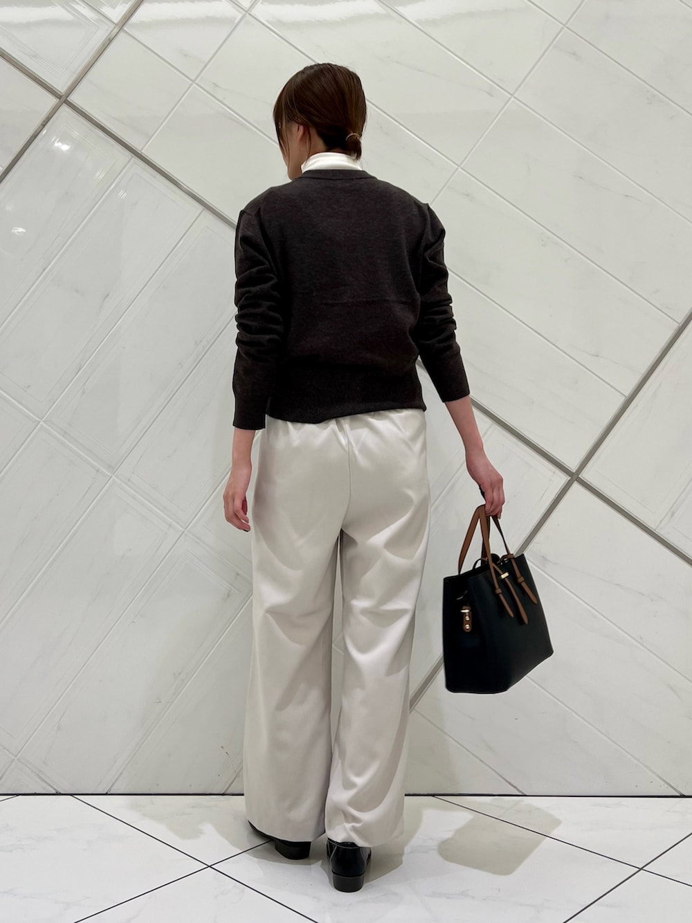 タートルトップスをレイヤードして見せても