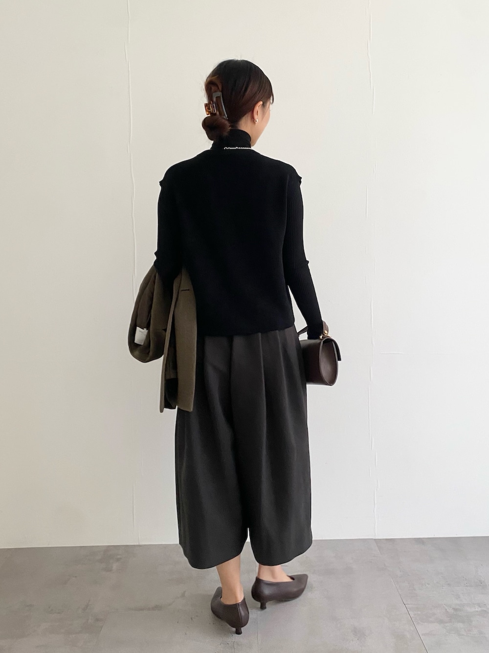 ゆったり身幅なおかげでニット合わせでもゴワゴワせず