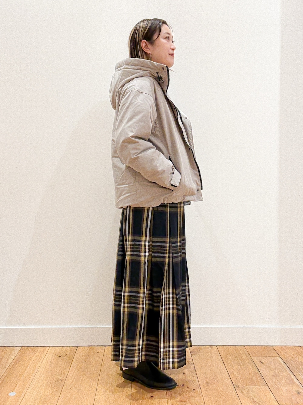着丈は少しスッキリとしているのでスカートやワンピースともバランスをとりやすいです。