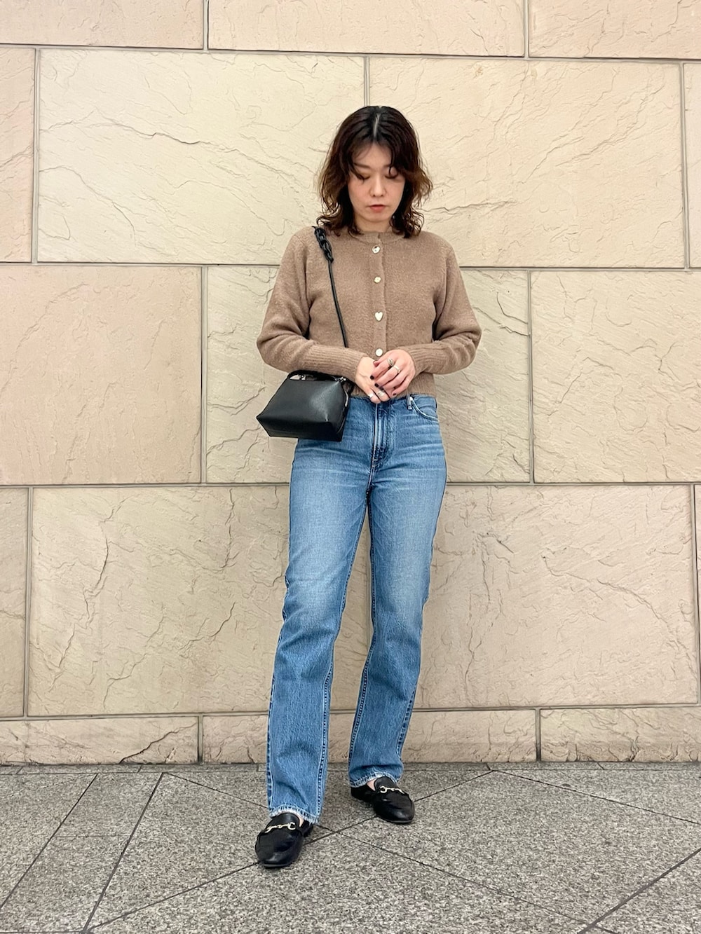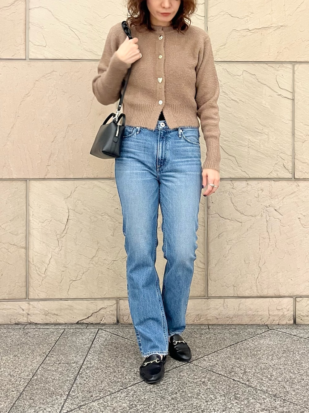 綺麗なシルエットのデニムはアッパーハイツのものです。デザインによってゆったりする形もありますが、こちらは割とフィット感ありでした。