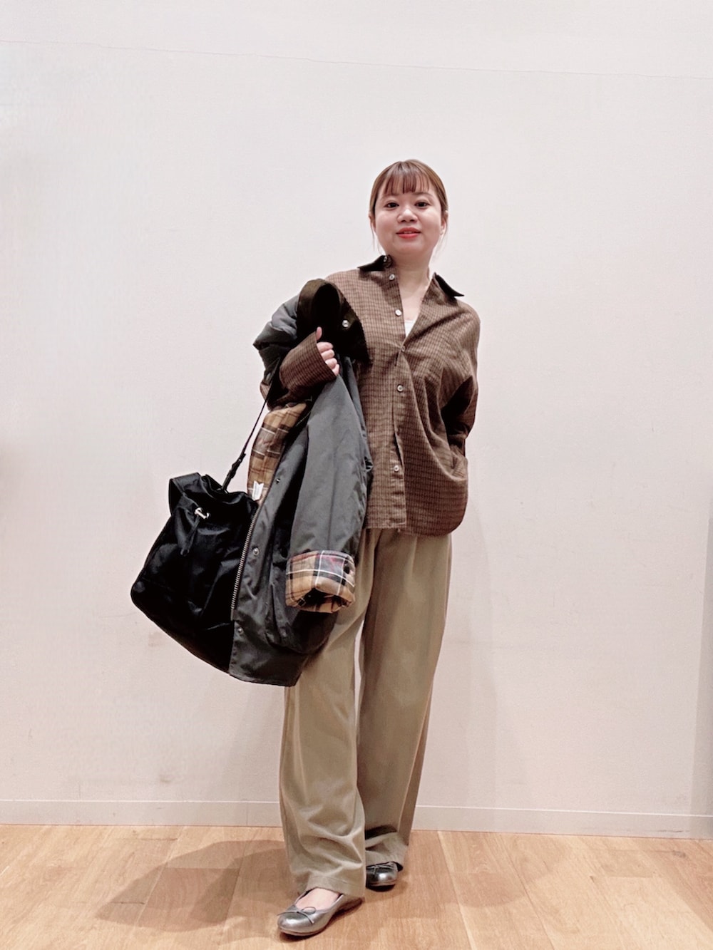 ボトムはシャツに合わせてベーシックなイージーパンツをチョイスしました✨