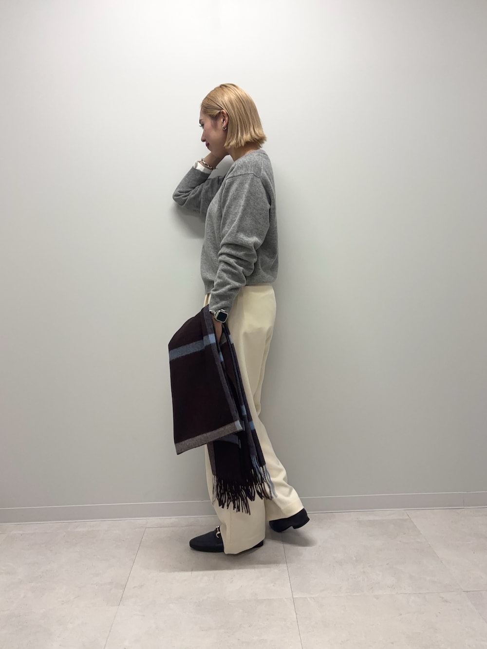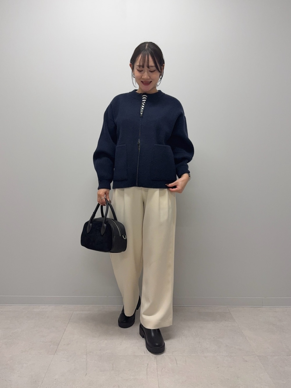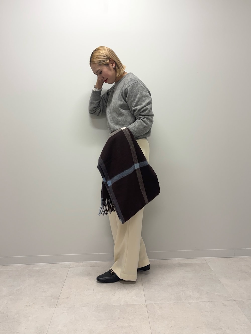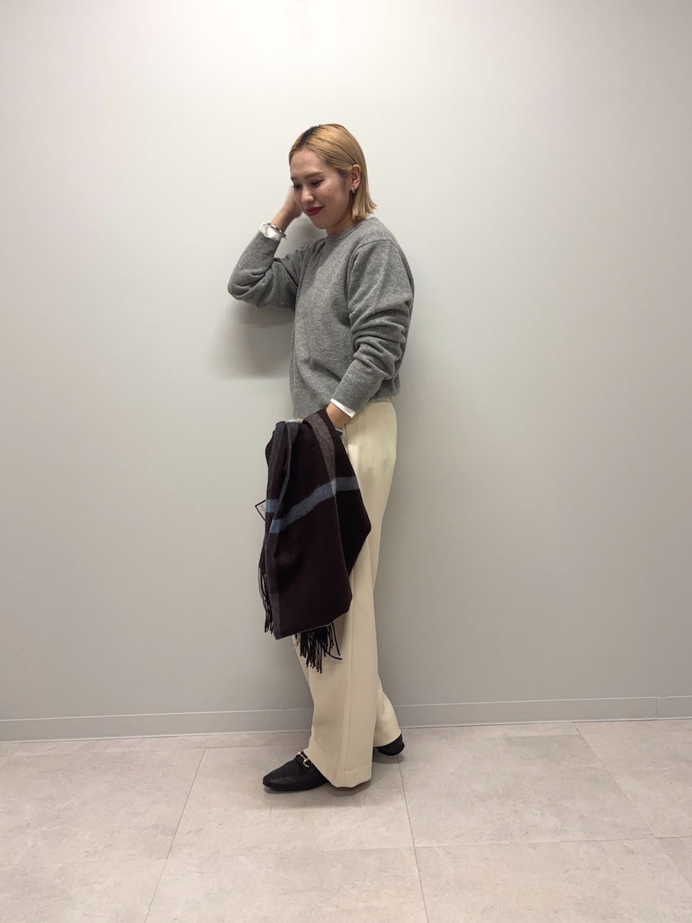 パンツはワイドストレートでラインが綺麗です!透け感は気になりませんでした◎アイテムが暗くなりがちな冬だからこその白パンツ、私は好きです!♪