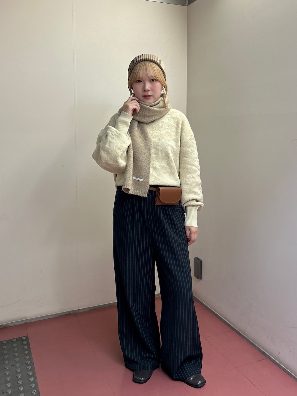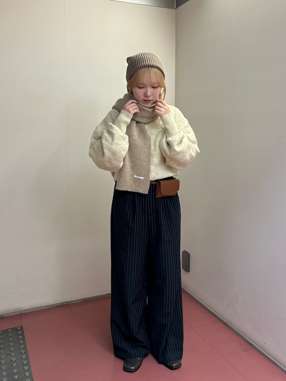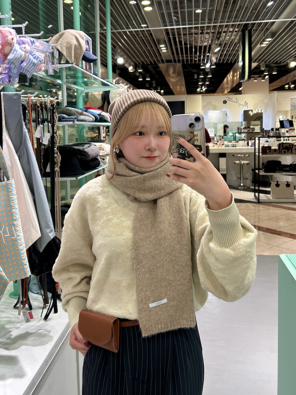 マフラーはボリュームが出過ぎないので重ね着した上からつけてもスッキリ見えますし、付けない時も持ち運びしやすいです!